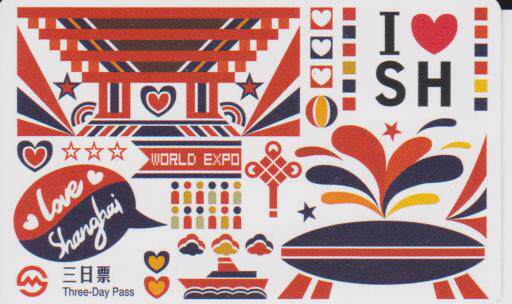 Шанхайская карта метро I Love Shanghai-World Expo Трехдневный билет TJ160103 (6-1) были использованы штрих-коды