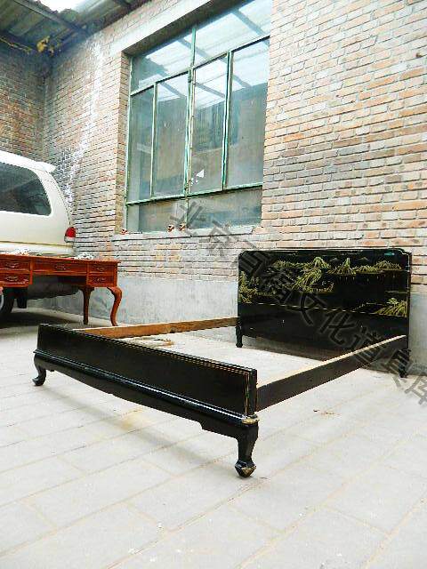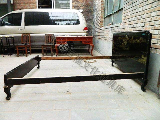 Старые предметы Старая мебель Деревянная двуспальная кровать можно разобрать черную краску изображает старые товары аренда товаров для продажи
