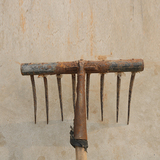 Фольклор старый объект Ностальгия старые сельскохозяйственные инструменты, съемки надлежащего железа сделать деревянная святая мотыга