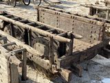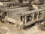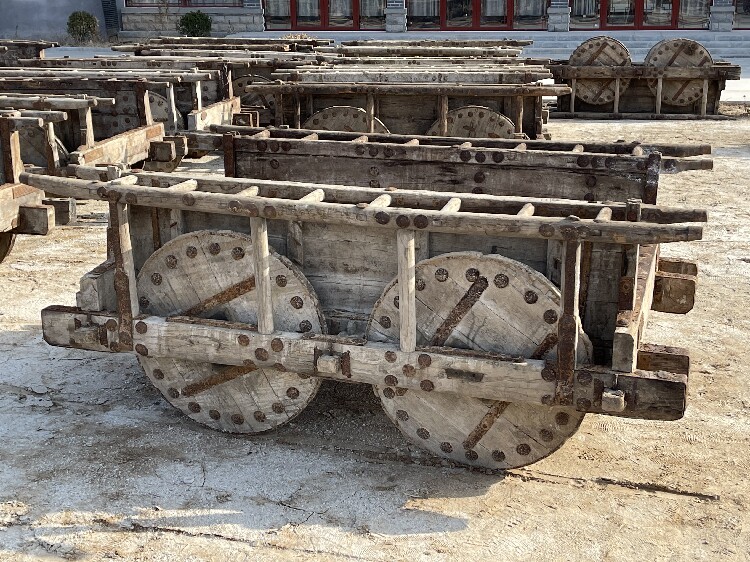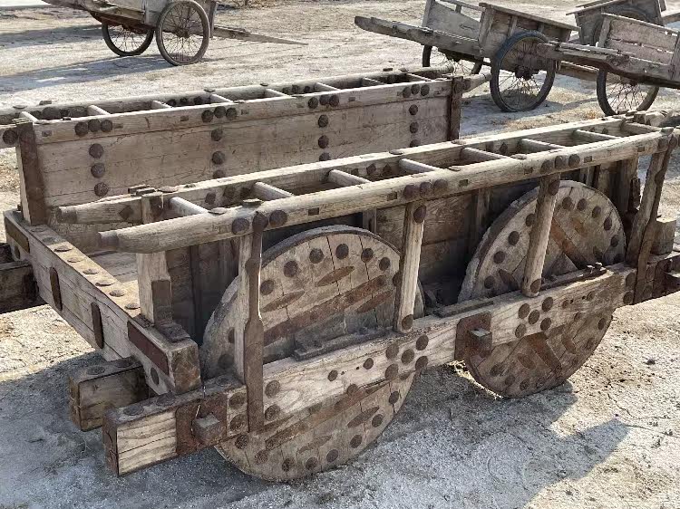 Древние тележки для быков старых колесниц транспортируют каменные машины старые модные деревянные колеса, народные старые старые зерновые автомобиль Четырех -ворота во время враждующих государств.