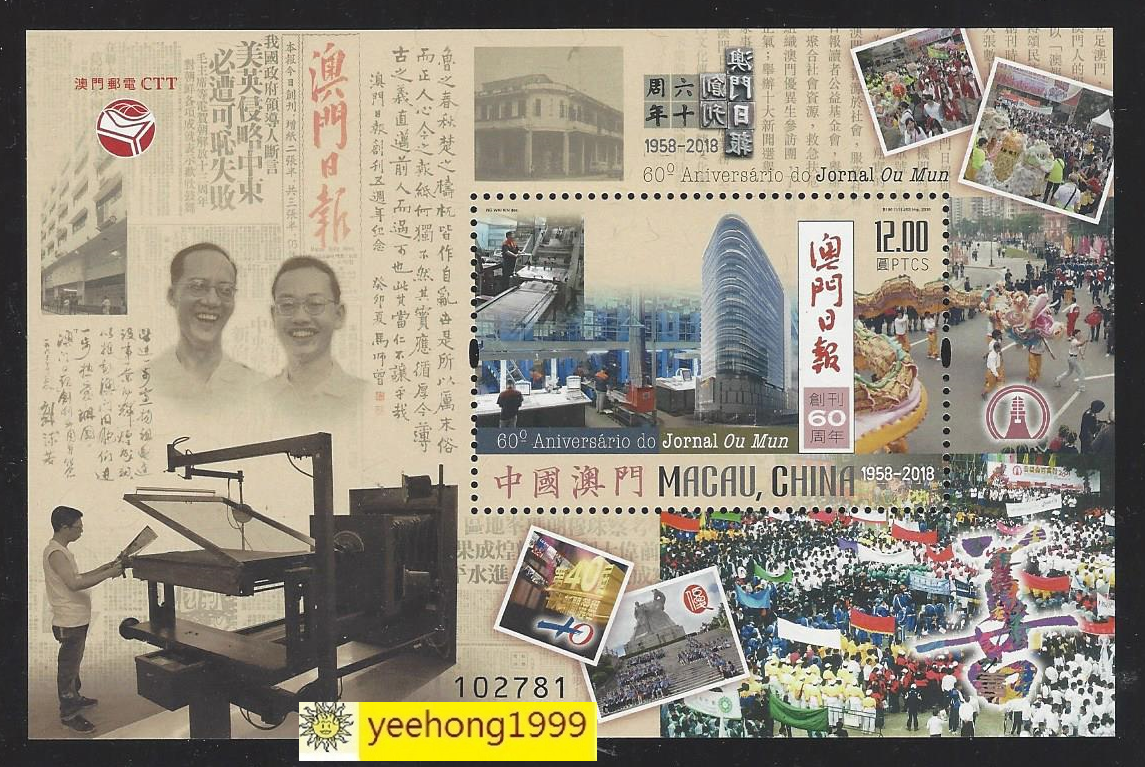Macau 2018 Macau Daily 60 -й годовщины малочные марки маленький Zhang