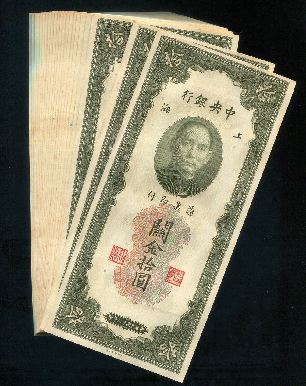 19 -й год в Центральном банке Китая Гуаньцзинь и американский банкнот издания 10 Двойной правила Юани, новое издание, новое издание, не дисквисная цена за залог