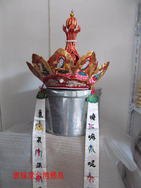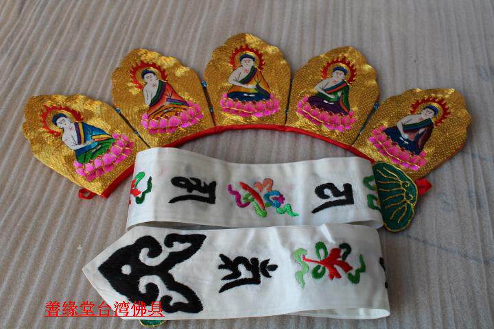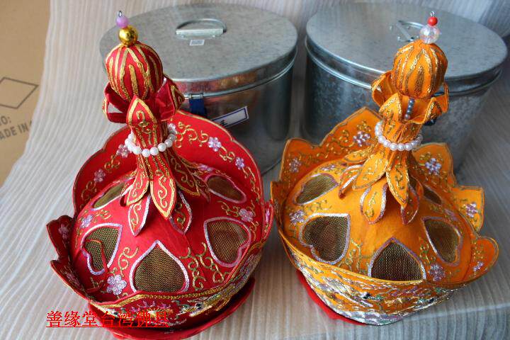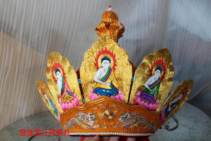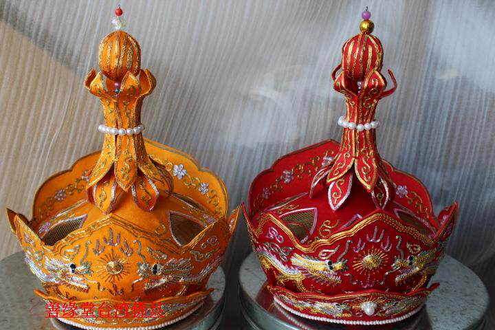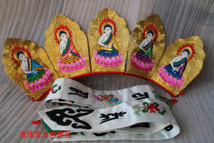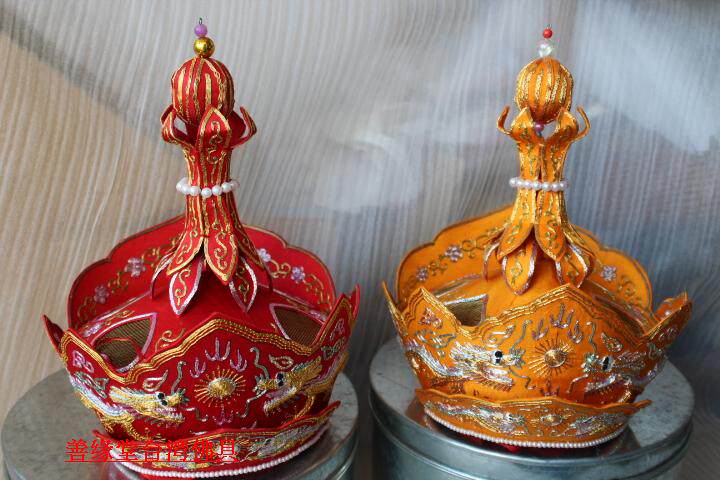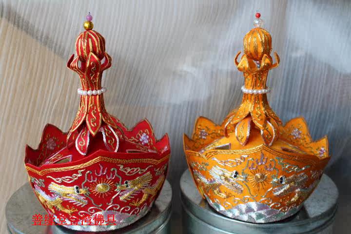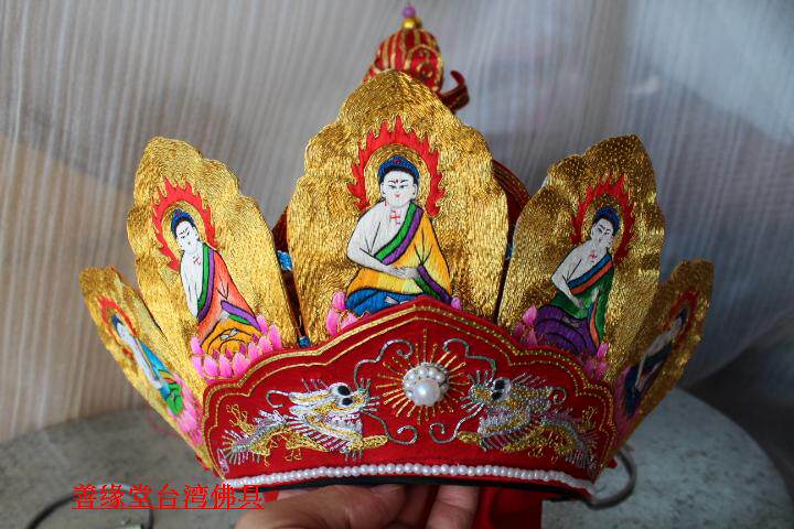 Pilu Hat пять Buddha Crown Su Вышивка ручной работы Piru Monk Monk Red Color] Мастер шляпа Пять Буддха Шляпа Буддийский храм