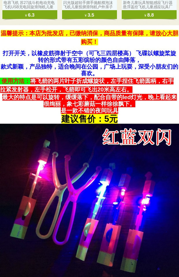 Красная и синяя двойная вспышка Slingshot Flight Arrow Exter Small Flight Arrows Night Market Kids's Light -Emerting Maventers Прямые продажи