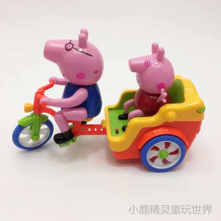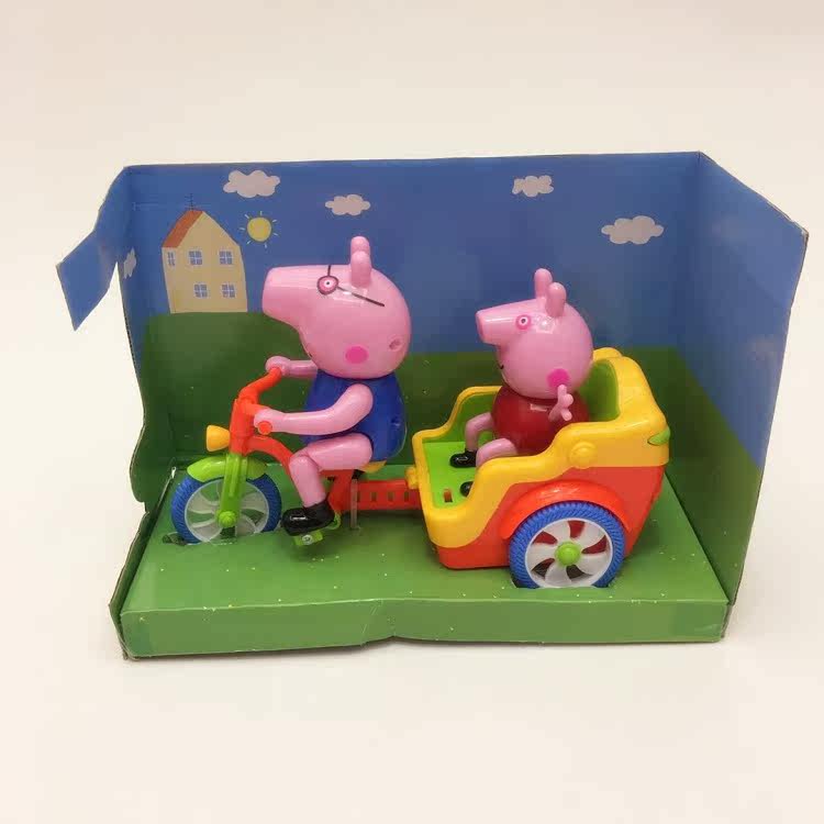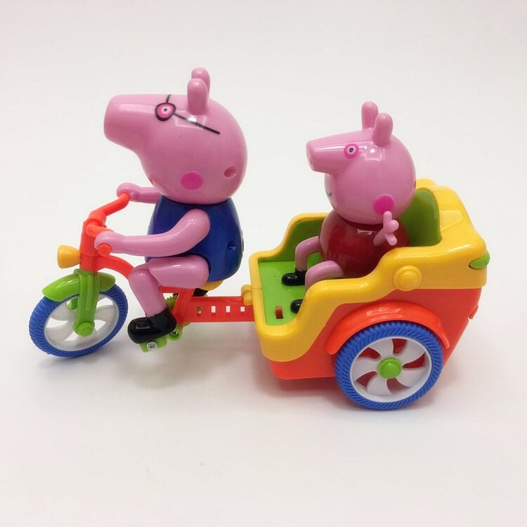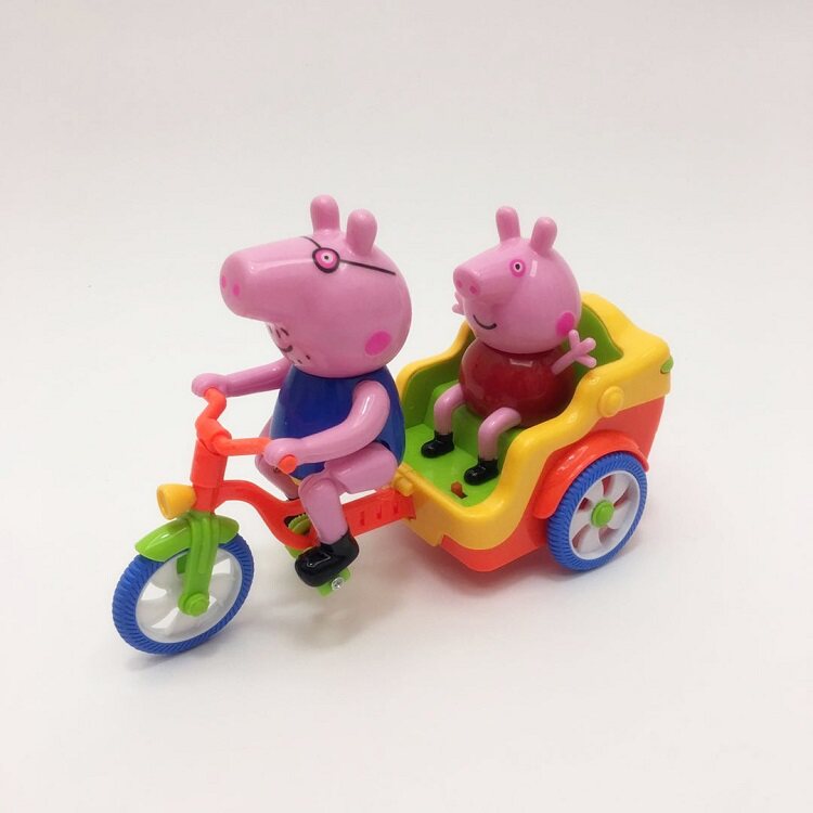 Папа Свин катается на трехколесном велосипеде и берет с собой милого Поросенка, чтобы развлечься.