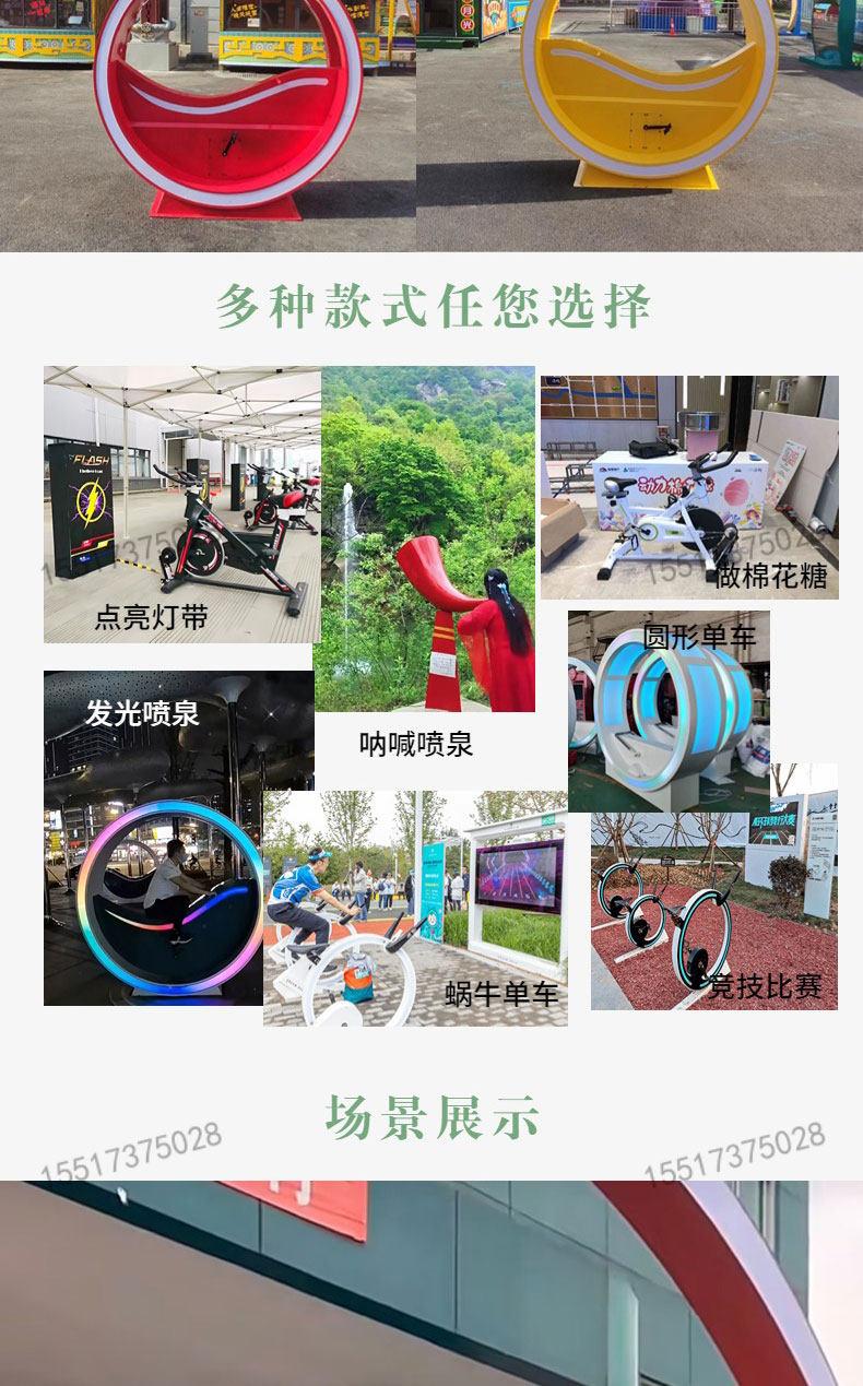 Дорожный интерактивный светящийся велосипед с педалями из нержавеющей стали для игр в воде для спортзала, фонтан, генерирование электричества