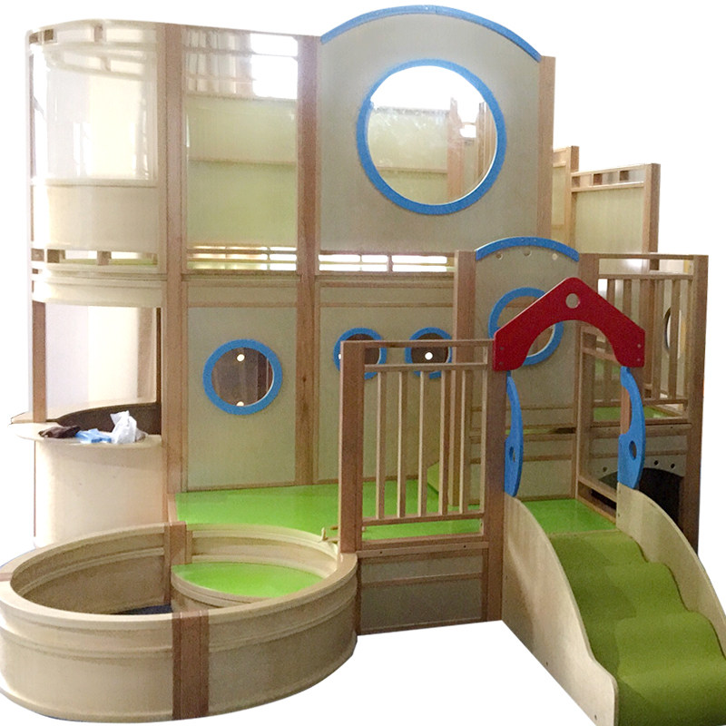 Деревянная горка для парков развлечений, дизайнерский бассейн с шариками, раннее развитие, игровой домик
