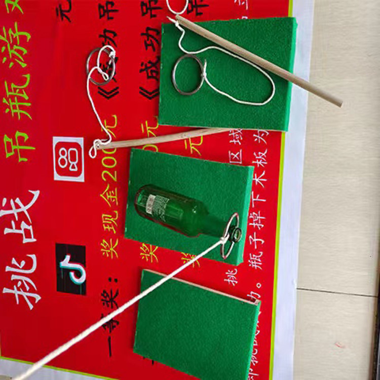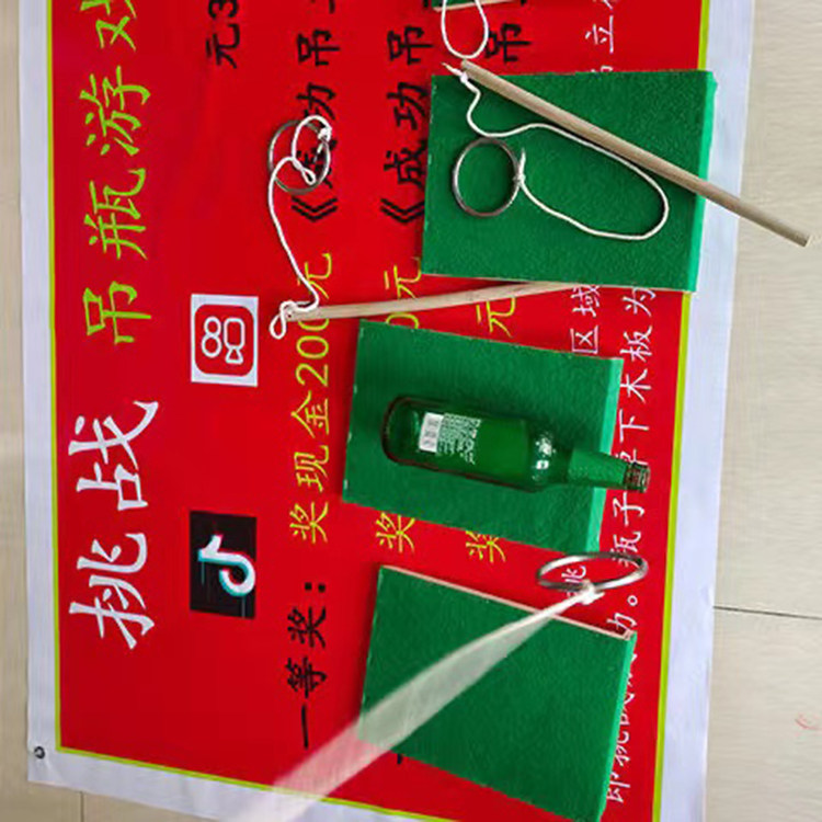 Висящая бутылка игра вызов сети красные качели с палачкой висят пивные бутылки, рыбалка, бутылочка, стрит, ночной рынок, киоски горячее проект