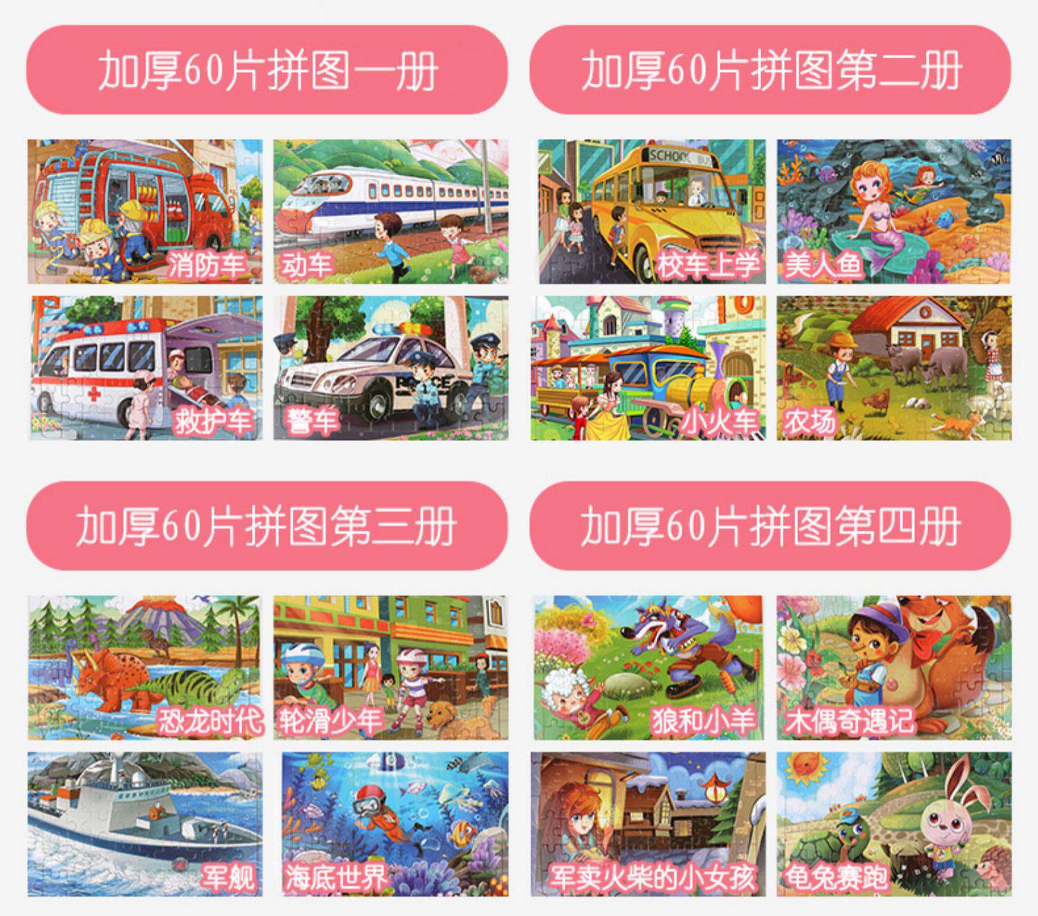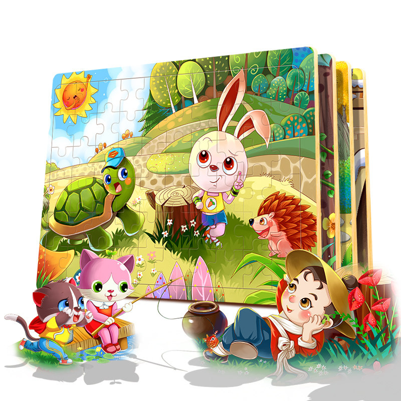 Мультяшная деревянная головоломка, интеллектуальная игрушка, 60 штук, пазлы для детей, раннее развитие, 2-3-4-5-6-7 лет