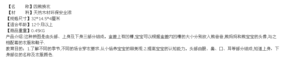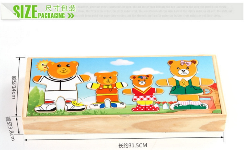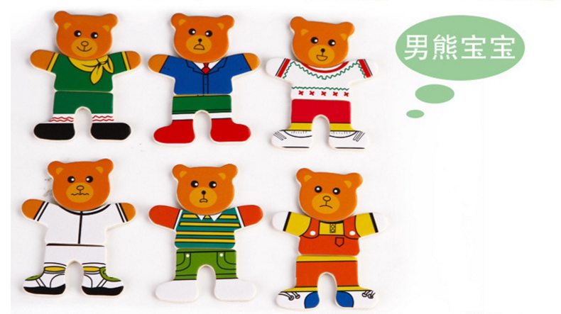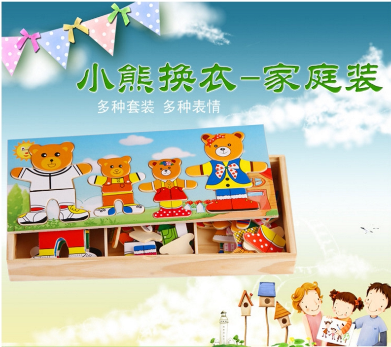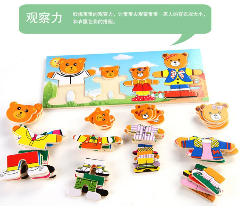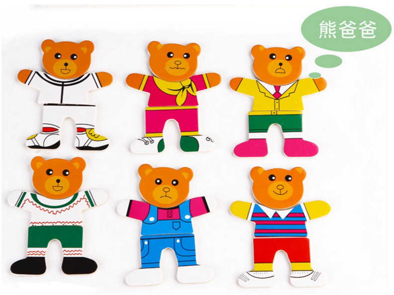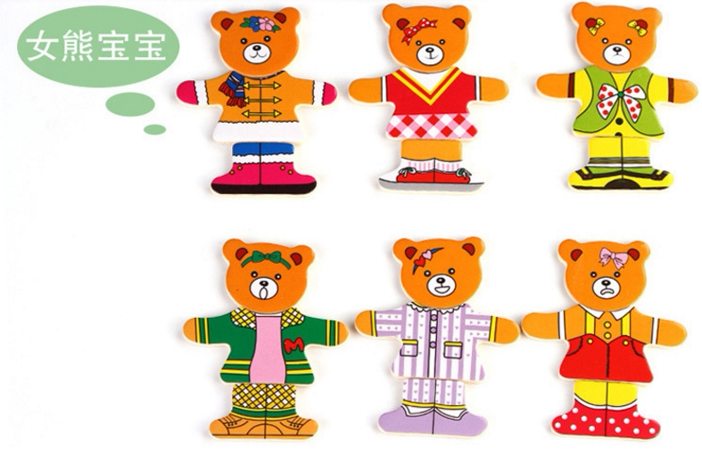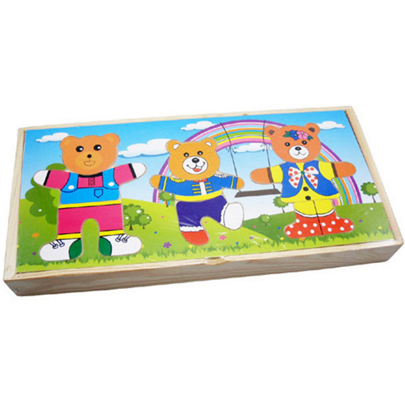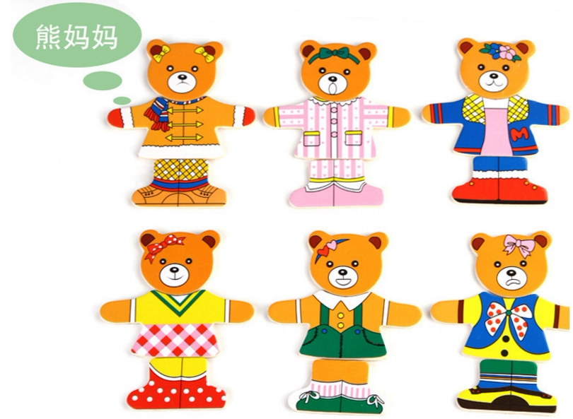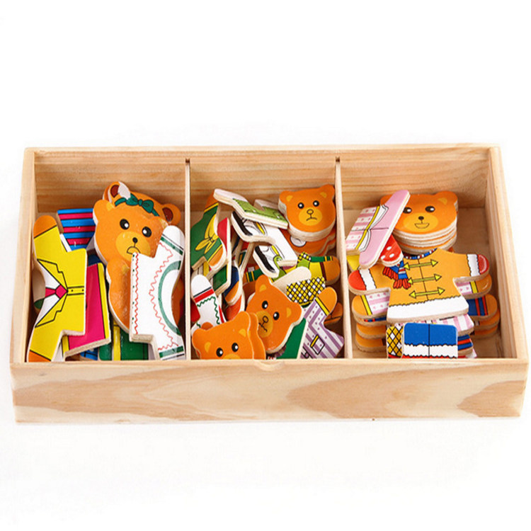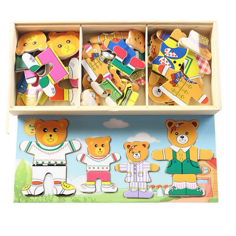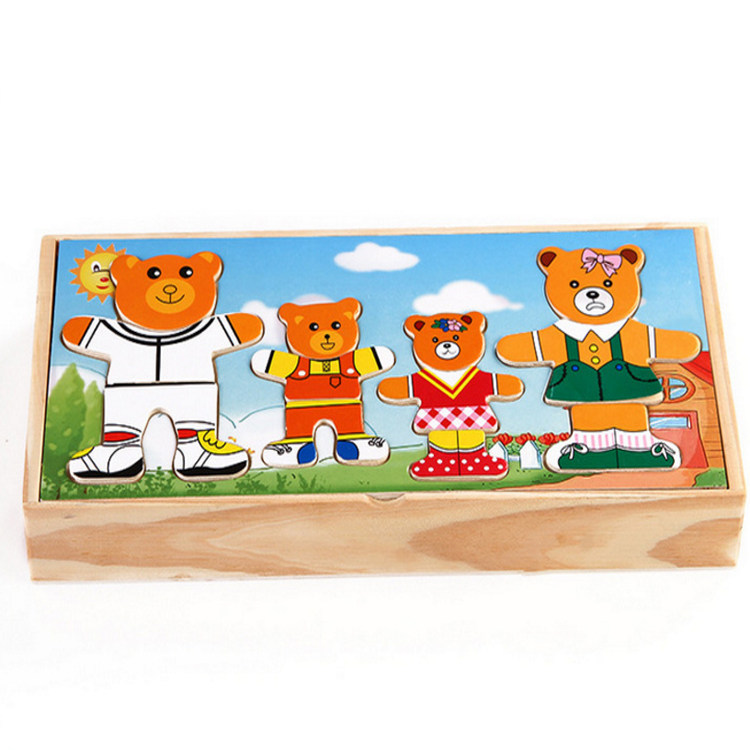 4 вида деревянных игрушек наряжать головоломку с заправкой медведей