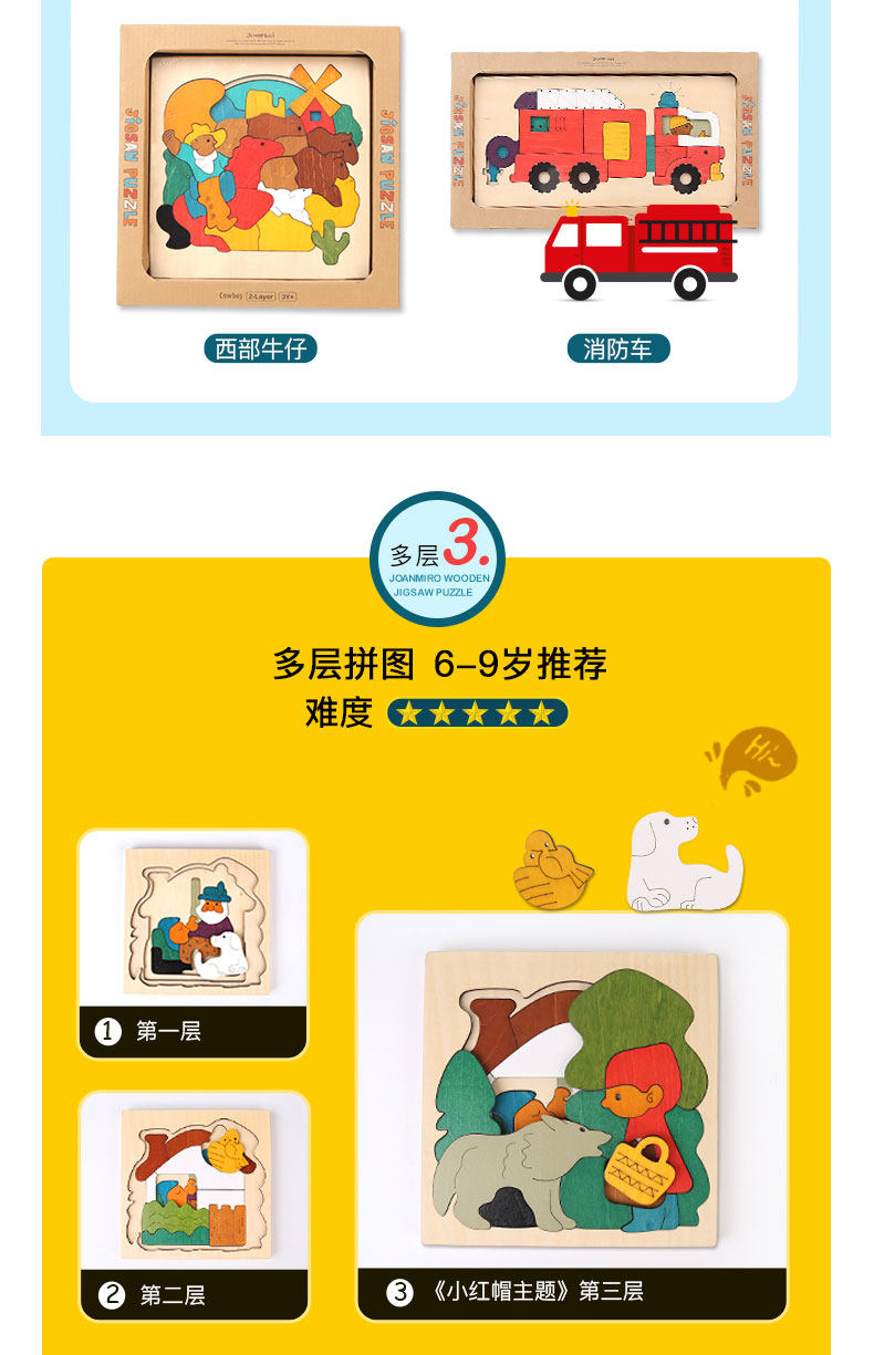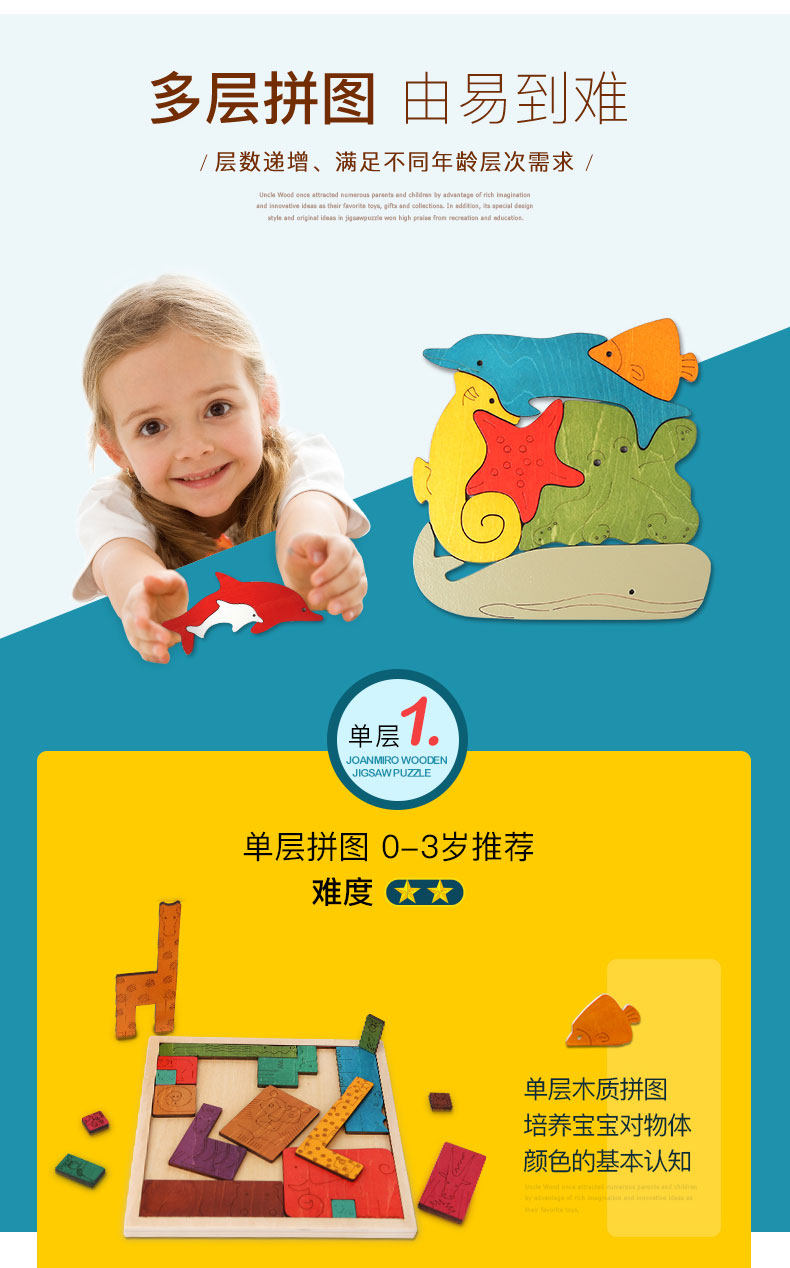 Деревянная многослойная трехмерная головоломка, хваталка для раннего возраста, пазлы для детей, 3D