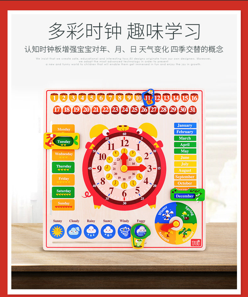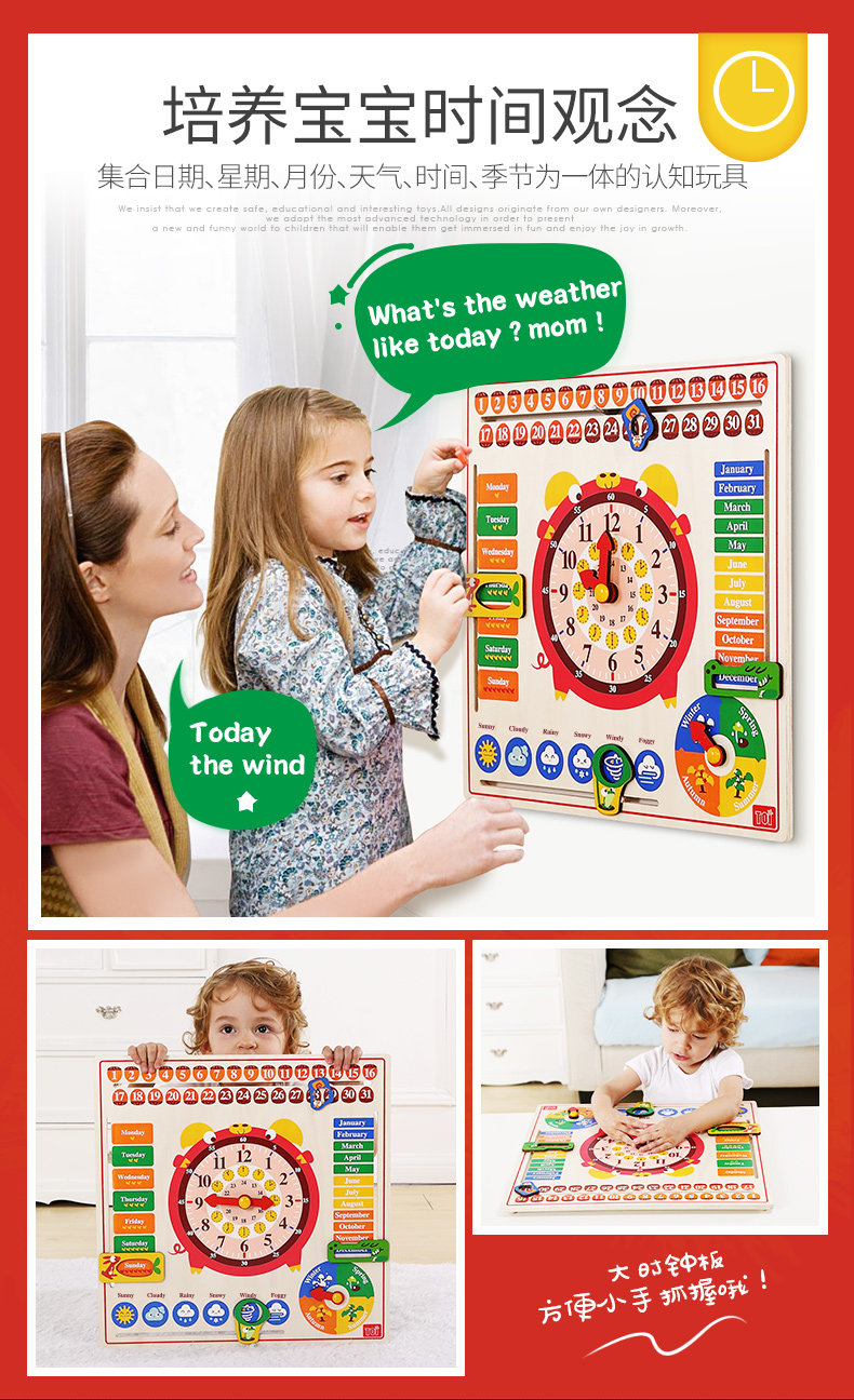 Toi, календарь, часы, головоломка, детская познавательная интеллектуальная игрушка, английский, раннее развитие, 2-3 лет