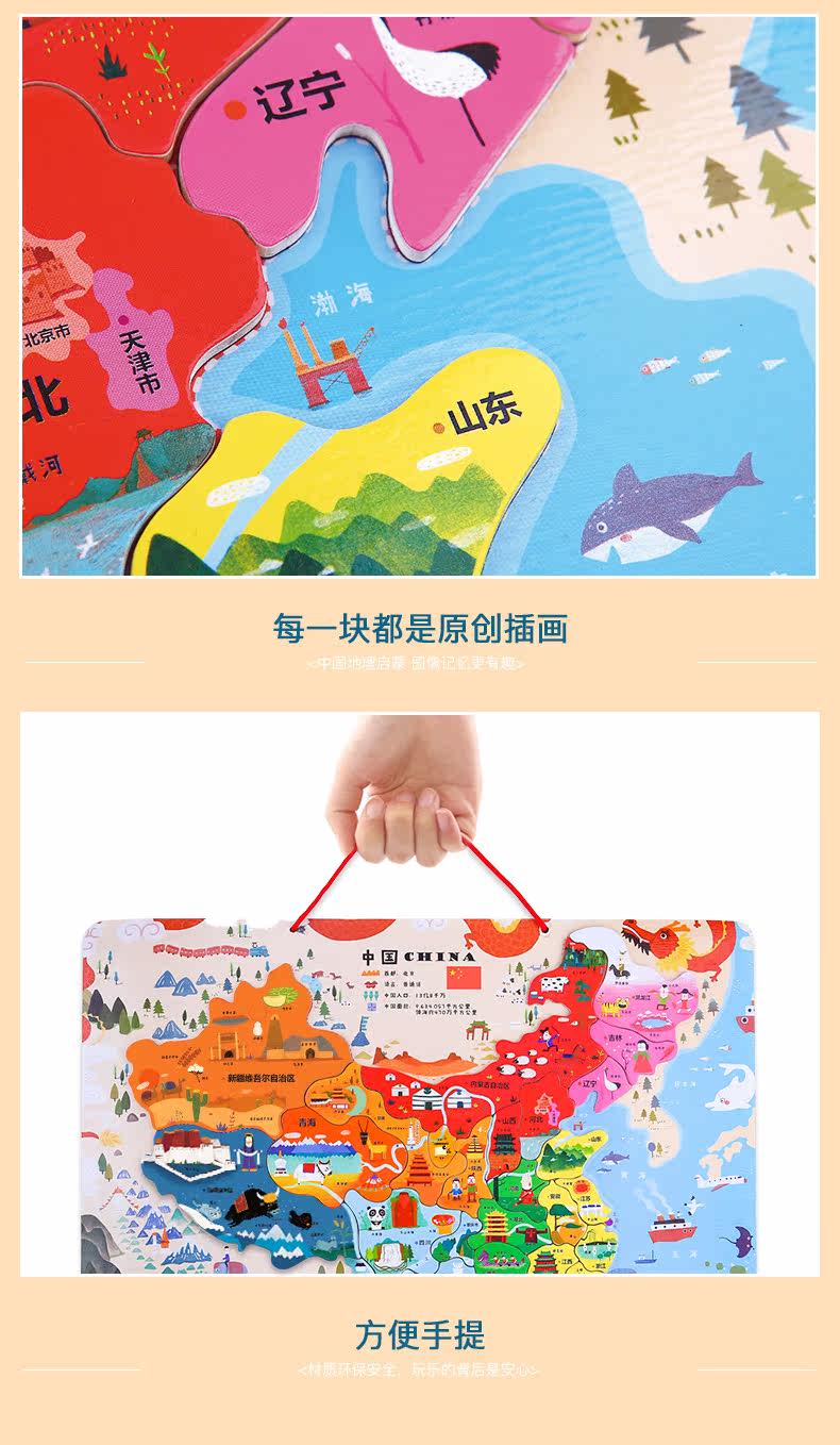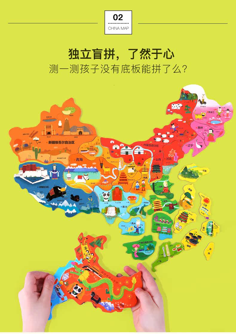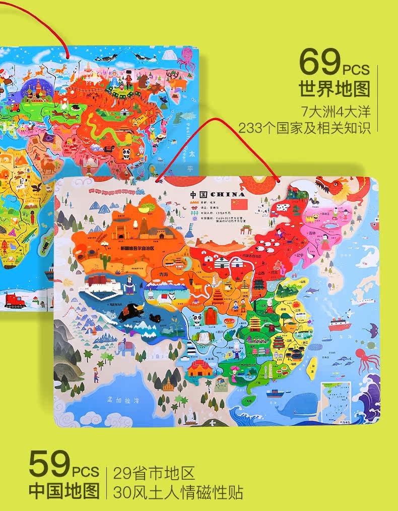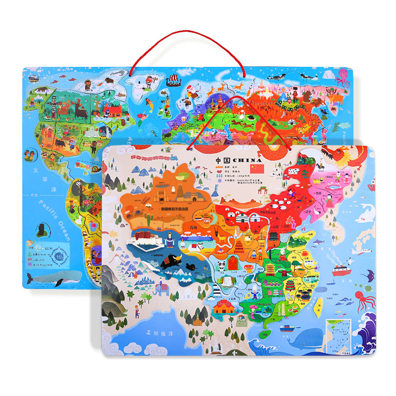 Китайская карта, магнитная деревянная головоломка для мальчиков и девочек, 4-5-6-7-8 лет
