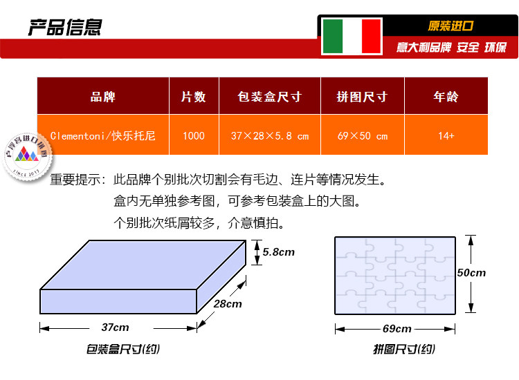 Clementsoni Ge Wave Ge Jie Beizhai 1000 кусочков Итальянской импортной головоломки 39378