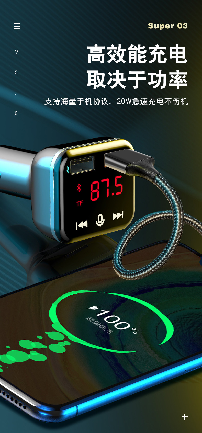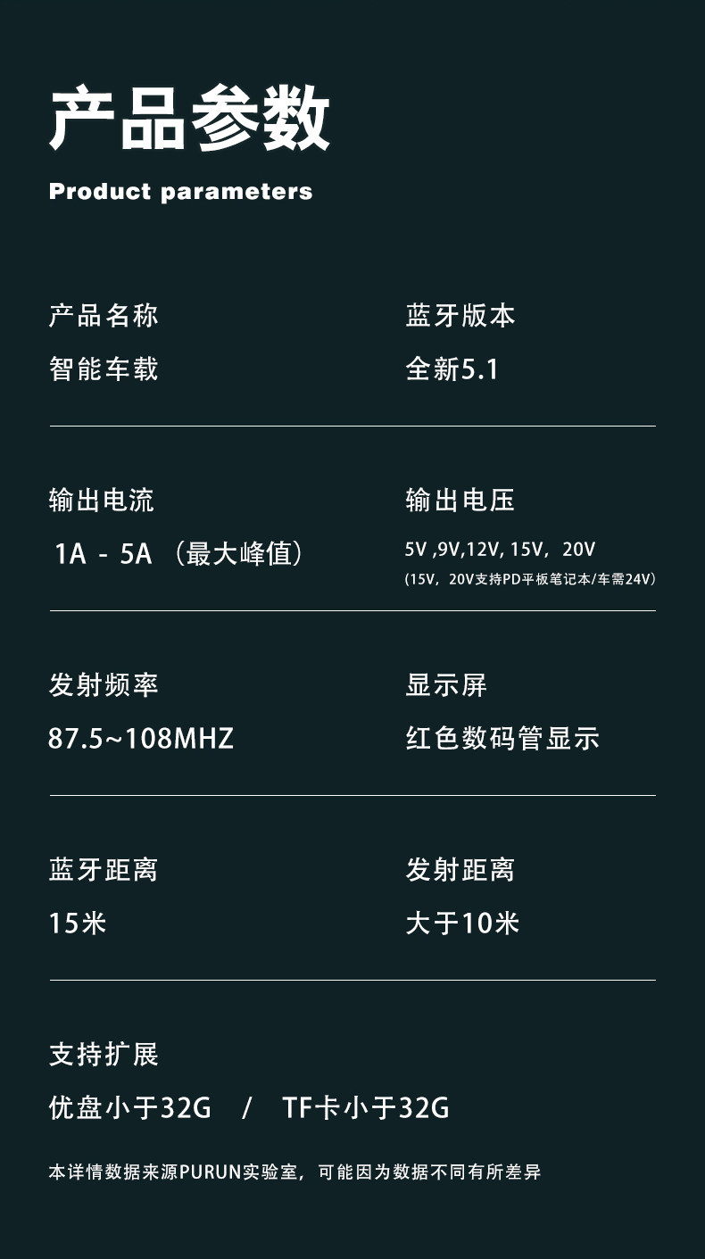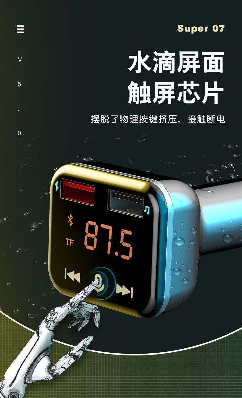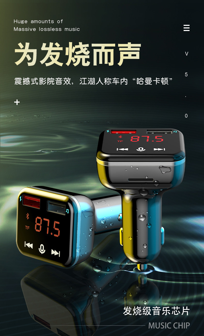 Counce Screen Car Mp3 Bluetooth Receiver 5.0 Player Car Lossless Music Cavine Calize Cigarette Charger Fast Charge