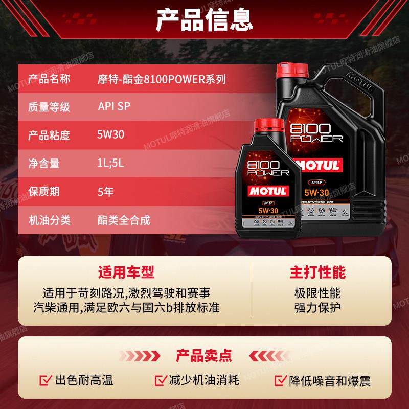 MOTUL оригинальное импортное 8100 POWER 5W30 сложноэфирное долговечное полностью синтетическое моторное масло SP класса National VI B