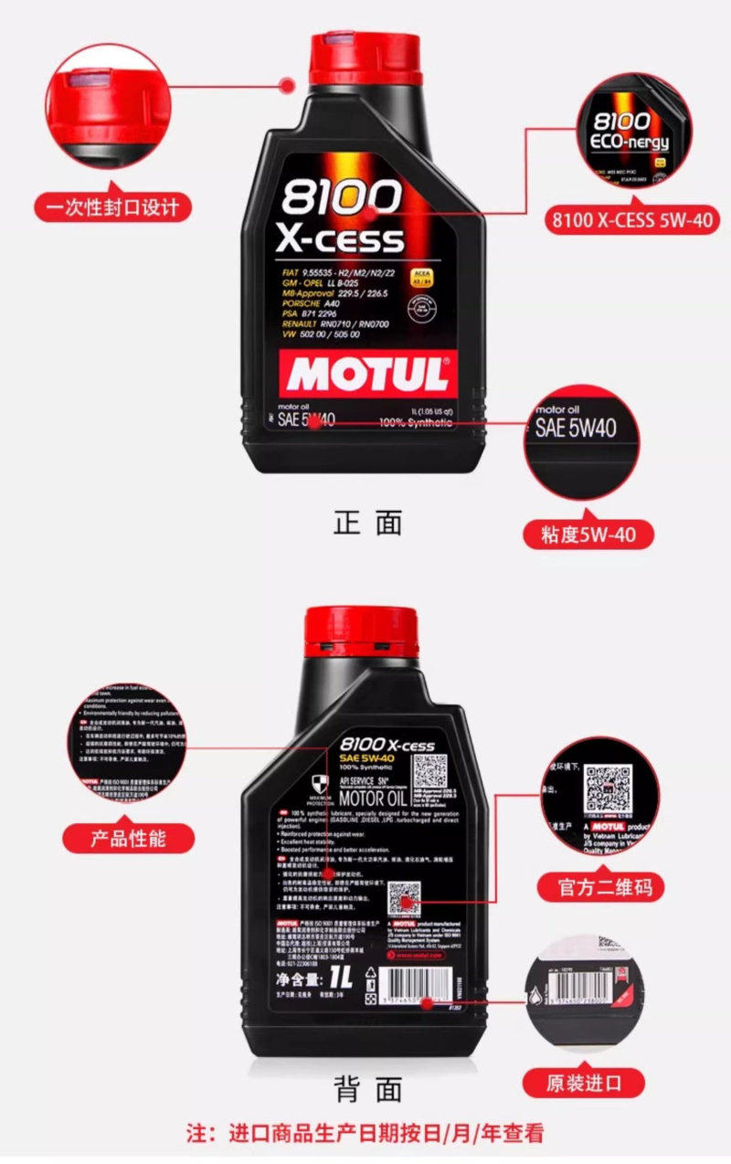 MOTUL 8100 X-CESS SN 5W-40 Полностью синтетическое моторное масло 1л/5л Официальная проверка на подделку