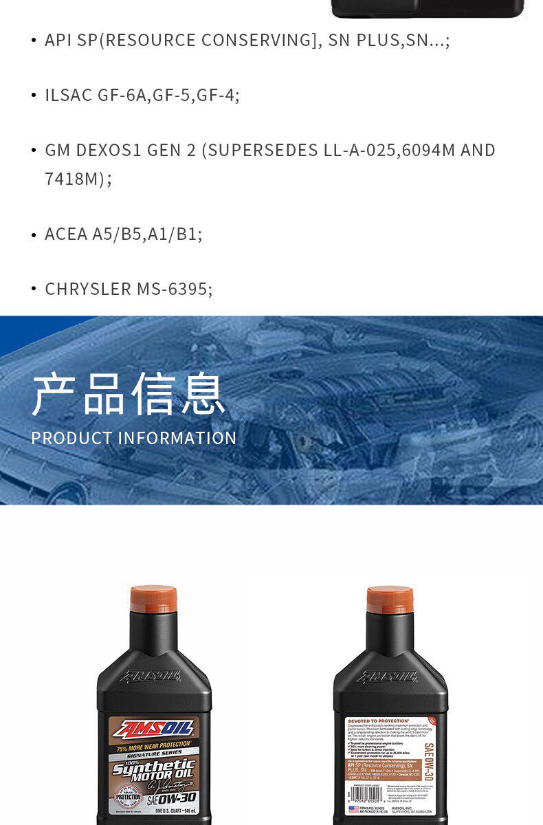 Dafu House Amsoil Azo 0W30 Полная синтетическая ультра -полная масляная смазка 0,946L