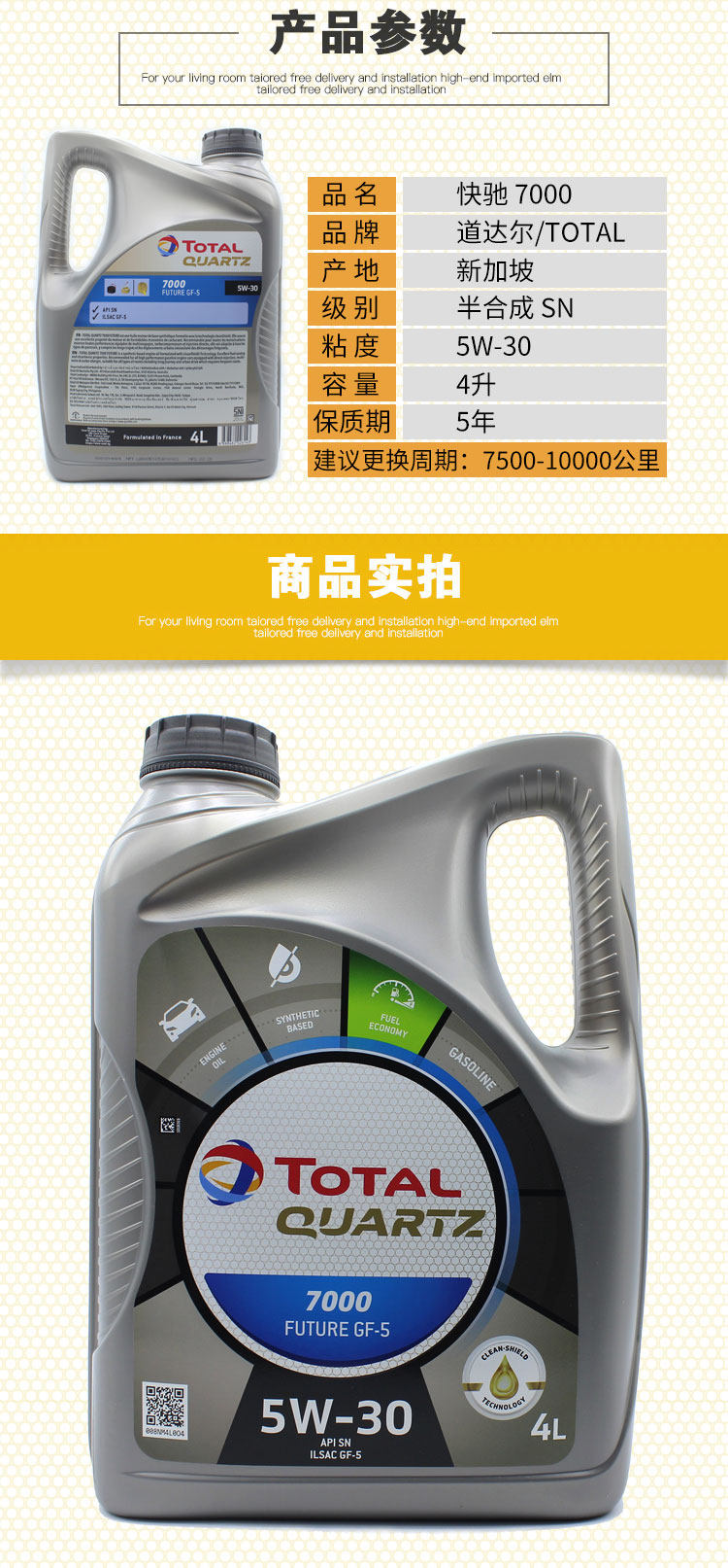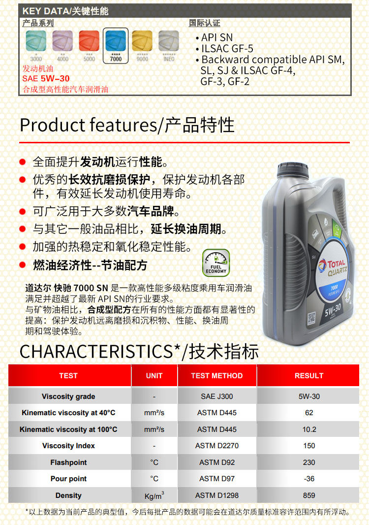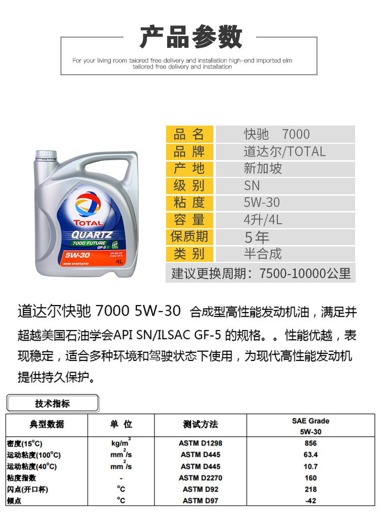 Оригинальный импортный DA DAL составляет около 7000 моторного масла 5W30SN/SP смазывание двигателя Four Seasons Universal Semi -Synthees