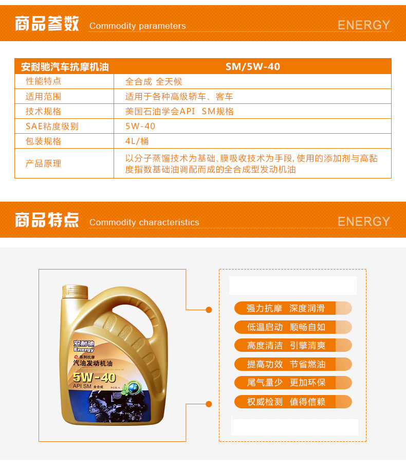 Приложение 5W-40 Полностью синтетическое моторное масло, бензиновый двигатель, подходящий для автомобильного масла SM-класса, комбинация 8L