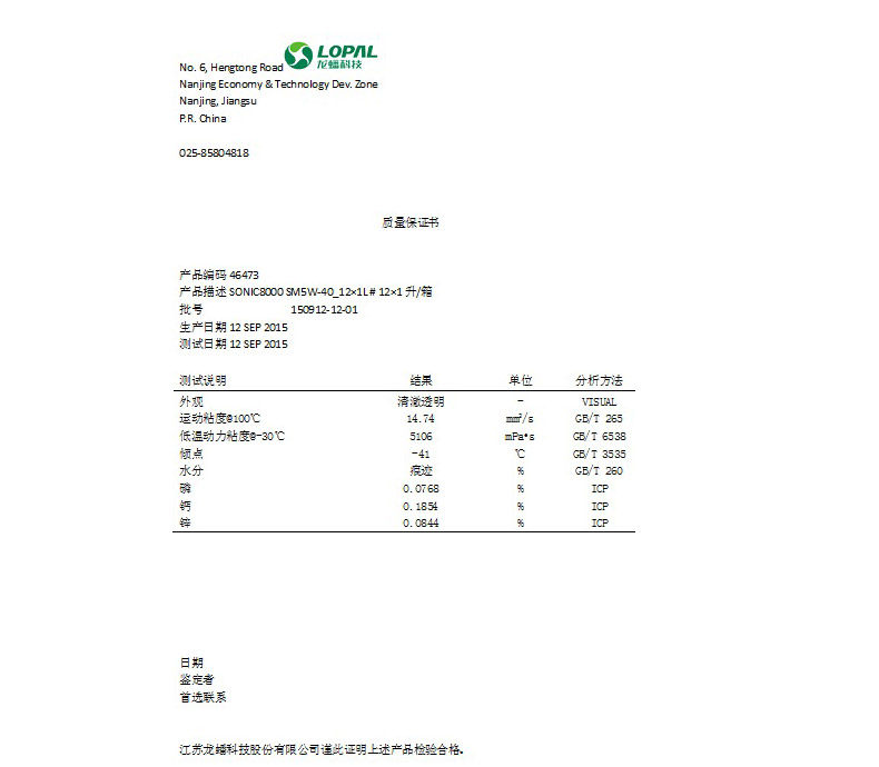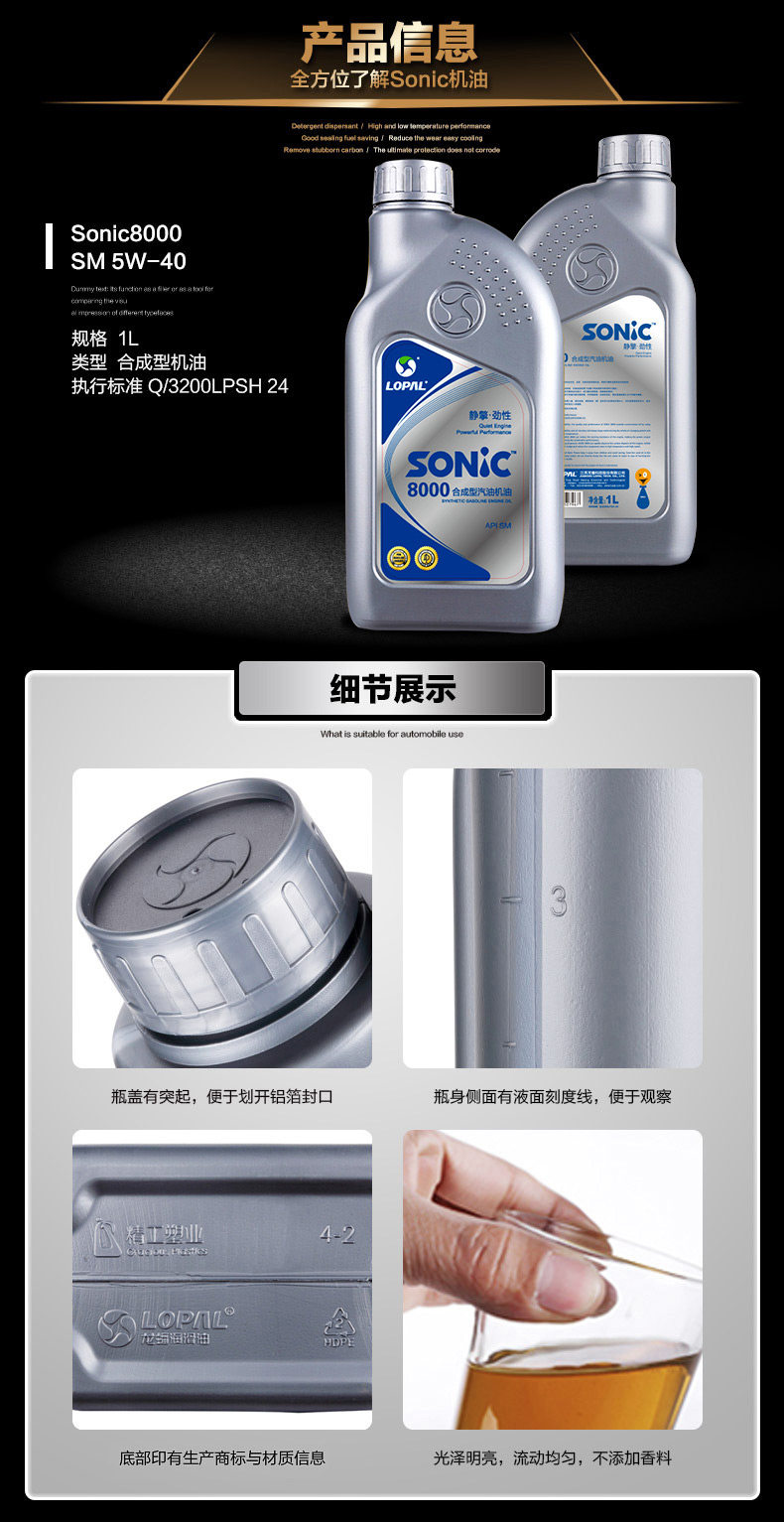 龙蟠 Подлинный смазочный моторный синтез масла Sonic8000 SM 5W40 1L