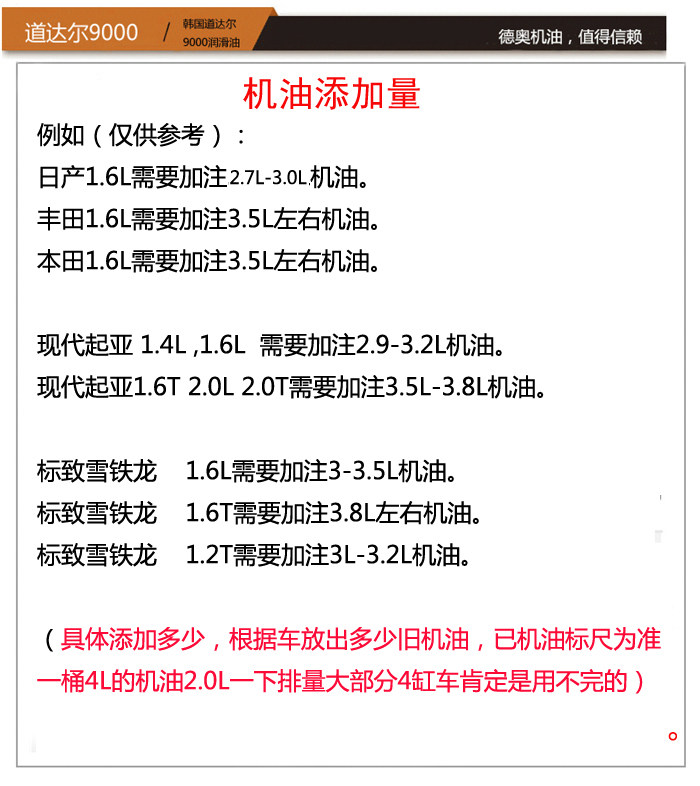Это масло сделано в КорееНе -додомный,Корейская версия Total является доступной и доступной, подходящей для японских и корейских автомобилей, а также французские модели с небольшим размером.Низкая вязкость, легкая дроссельная заслонка, хорошая экономия топлива.НетПодходит для немецких автомобилейПодождите