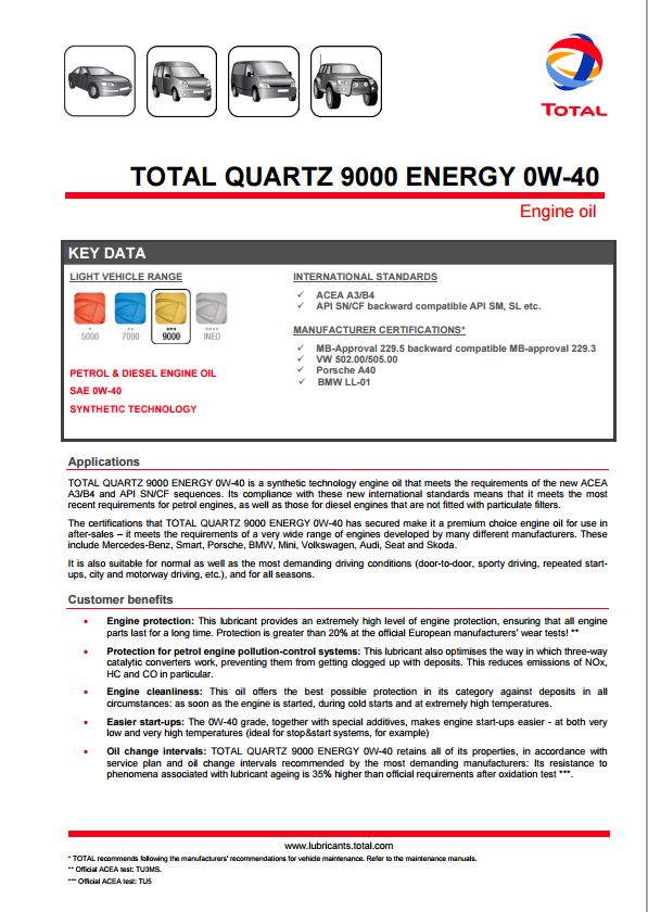 Daedal 9000 Energy Energy 0W-40 SN-Class Полное синтетическое моторное масло 4L набор