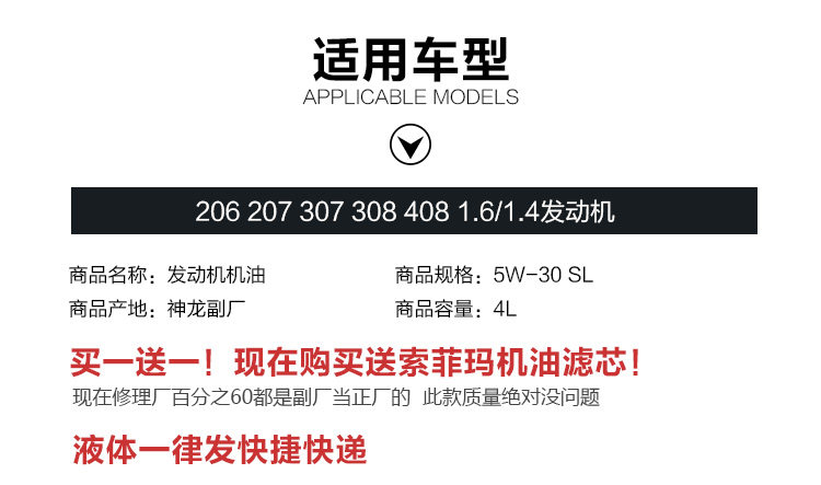 Адаптировано к Dongfeng Peugeot 206207307408308 Материал масла масла моторного масла 5W30 5W30
