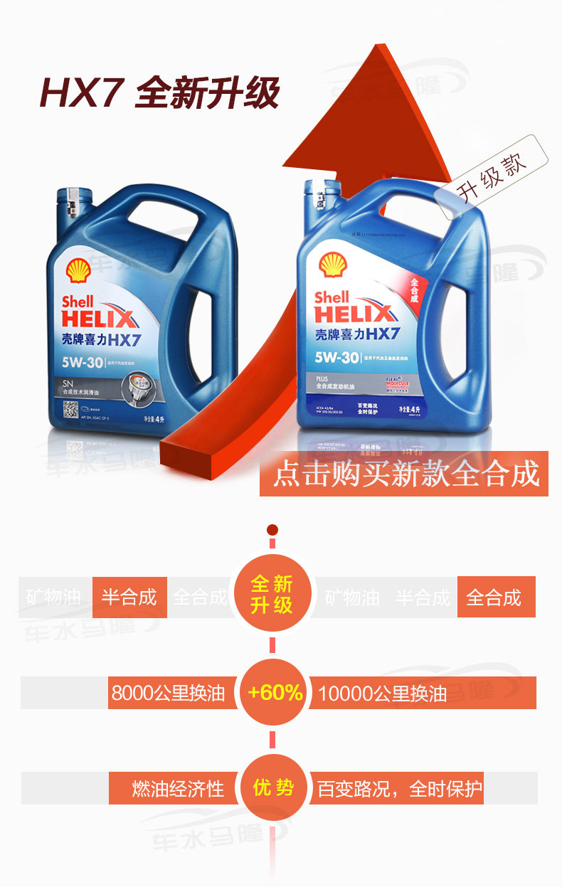 Масло оболочки подлинное HX7 5W-30 Новое обновление Полное синтетическое синий ракушка синий смазочный масло двигателя XILI
