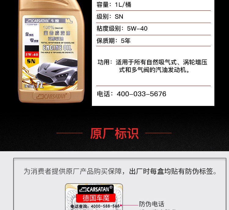 CAR DEMON 1L Полная синтетическая машина масла 5W40.
