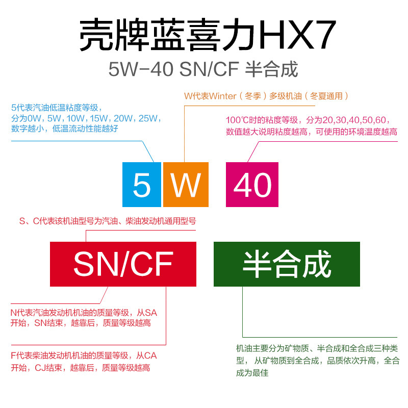 Shell Shell Shell LAN XILI HX7 Полу-образовательный моторный масло 5W-40 SN Уровень 4L/бутылка Гонконг Оригинальный импорт