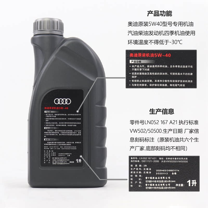 Применимо Audi Special Motor Oil A3A4LA5 A6LA7Q3Q5 Полный синтетический 5W40 оригинальный оригинал