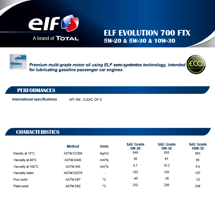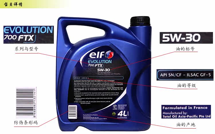 Оригинальный импортный эльф эльф OLFF 700 FTX 5W-30 GF-5 Полу-формация Моторное масло 4L