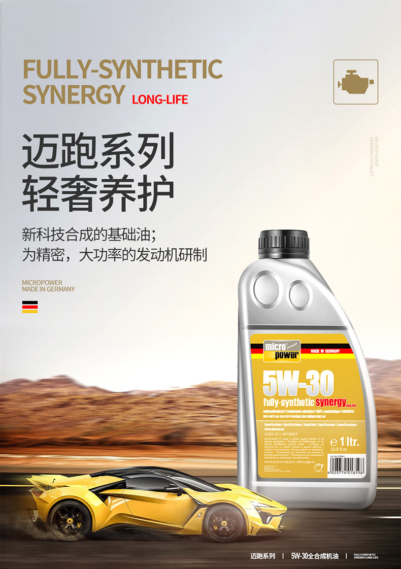 Моторное масло, натуральное масло, синтезированные универсальные импортные смазочные материалы, Германия, 5W