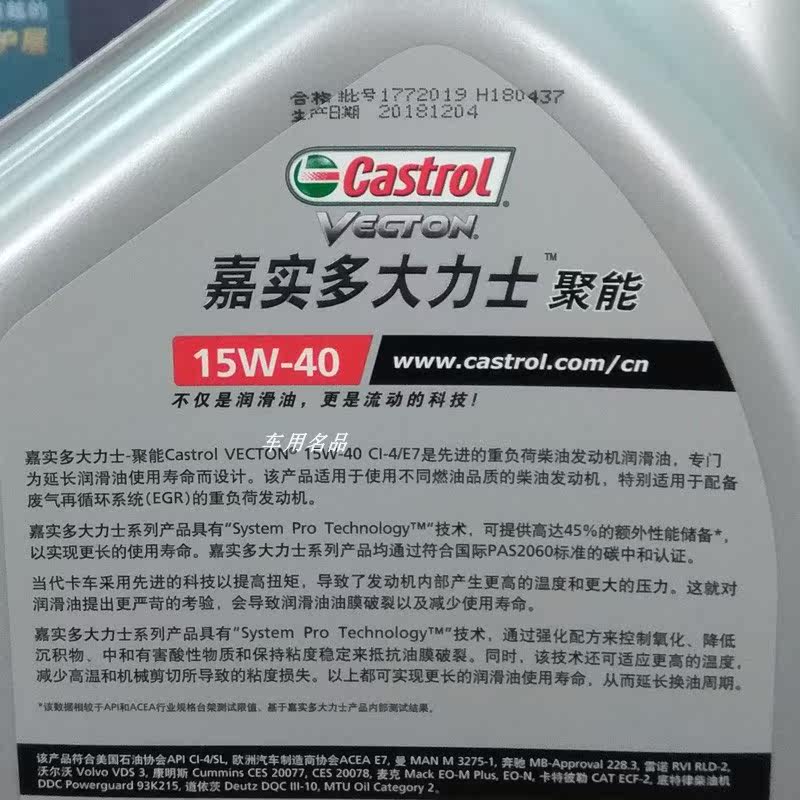 Castor Duo Vecton CI4 CI4 CI Shishi Сколько гонгши-полинезон смазывание дизельное топливо электрическое масло 15W-40 4L