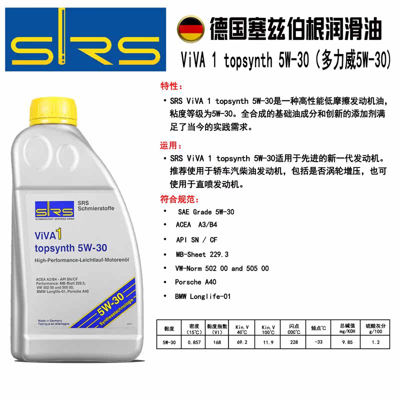 SRS5W-30 Полное синтетическое автомобильное моторное масло подходит для Mercedes-Benz Volkswagen, Special Clardy подлинный Dolvi 1L