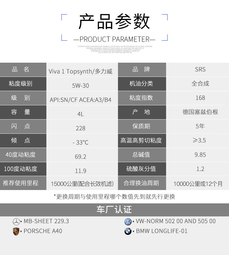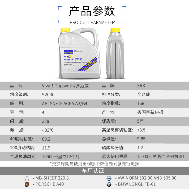 SRS VIVA 1 topsynth 4L 5W-30 SN/CF