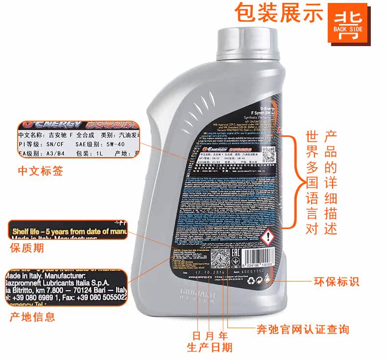 吉安驰 Оригинальное импортное синтезированное моторное масло, смазочные материалы, 5W, 40