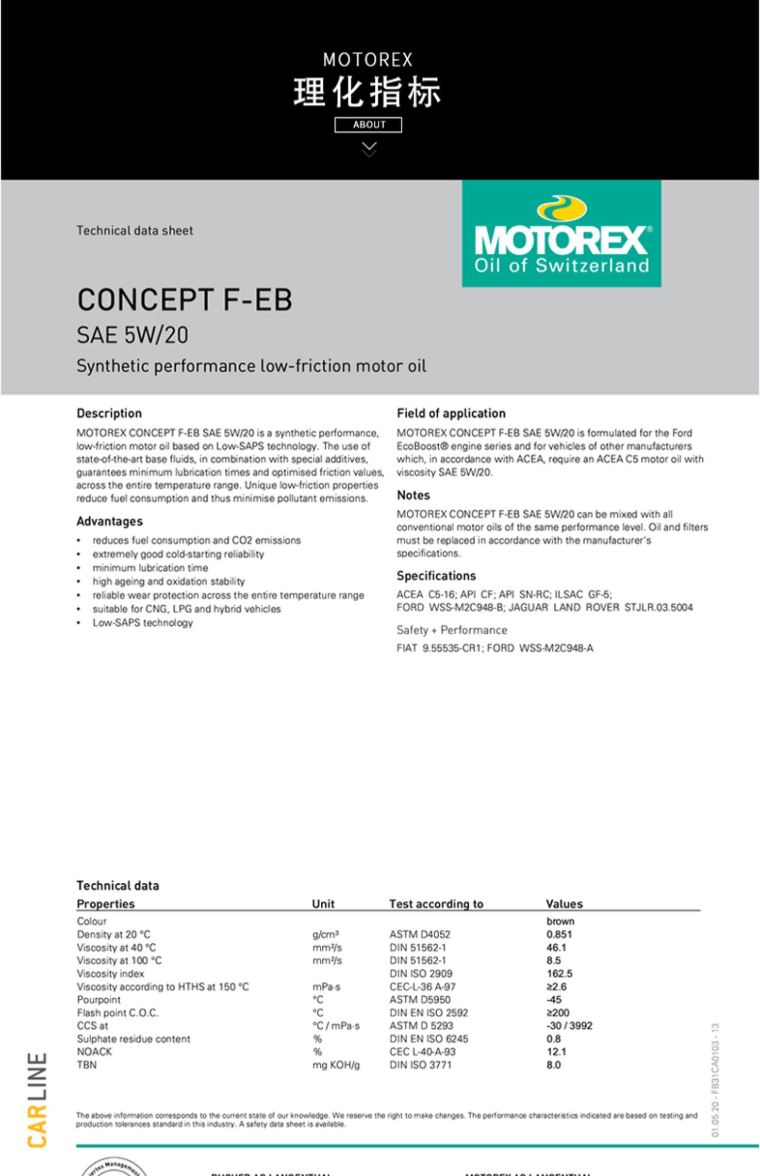 Motorex Swiss Pullyntection Motor Concept (кроссовки) Концепция F-EB 5W-20 1L