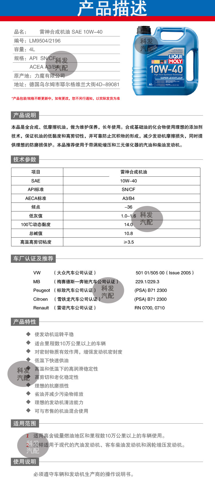 Германия Лаоров Полный синтетический автомобильный двигатель