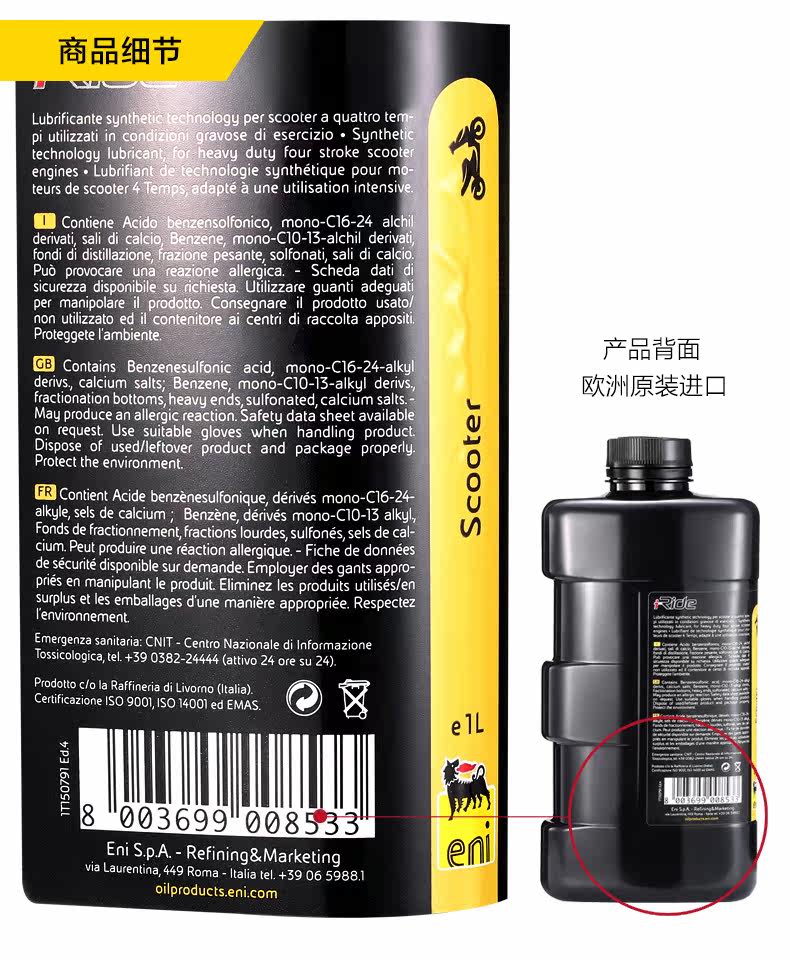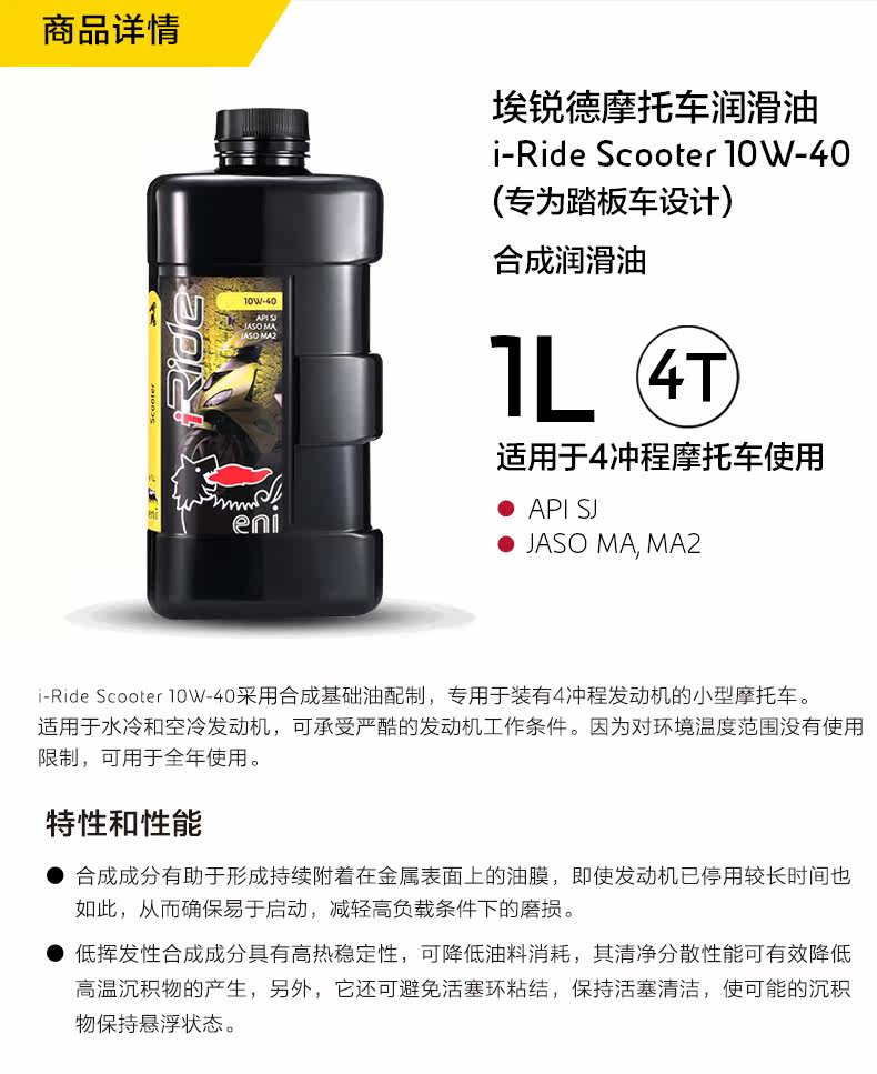 Eni Eni Синтетический мотоцикл Смазочный масляный скутер 4T SJ 10W-40 1L Original ARP