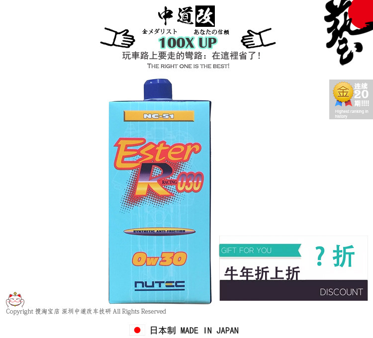 Шэньчжэнь средний дао изменил оригинальную японскую ореховую машину для молочной машины NC-51 Полный синтетический эфир 0W-30 Ультра-микро-молекула