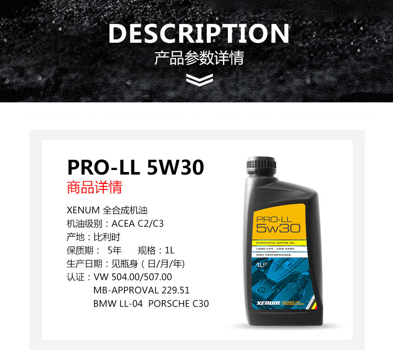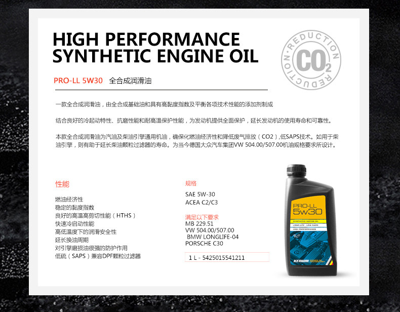 XENUM Кимон оригинал импортированный полный синтетический автомобильный масла ACEA C3 Pro-Ll Series 5W30 1L Установка
