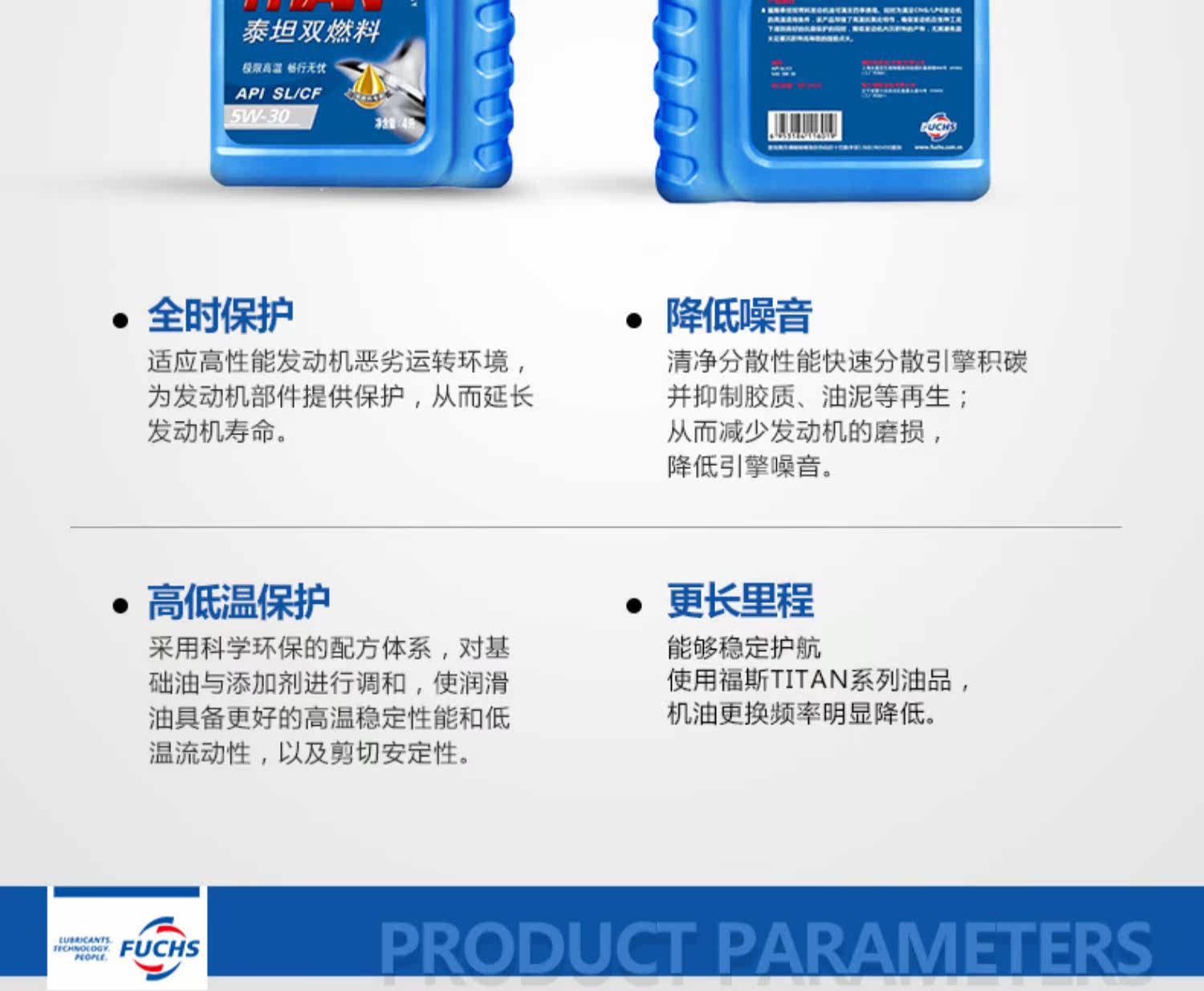 FUCHS Titan двухтопливное высокопроизводительное моторное масло 5W-30 4L специальное двухтопливное масло, подходящее для городских дорог.