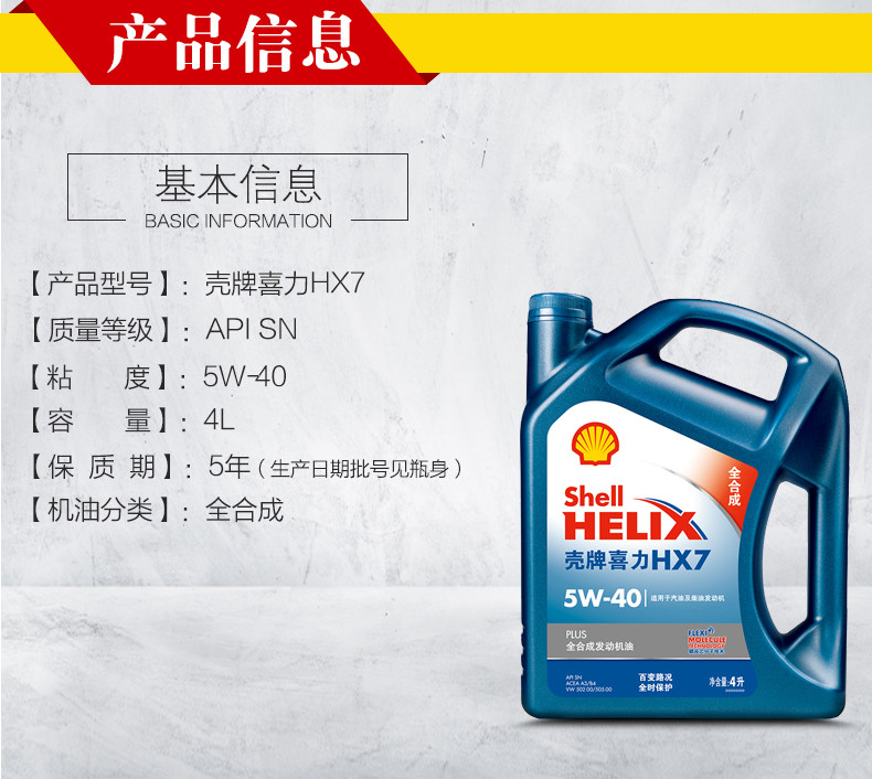 Оболочка оболочки HX7 плюс 5W-40 Полный синтетический масло SN Автомобильное масло 4L 4L