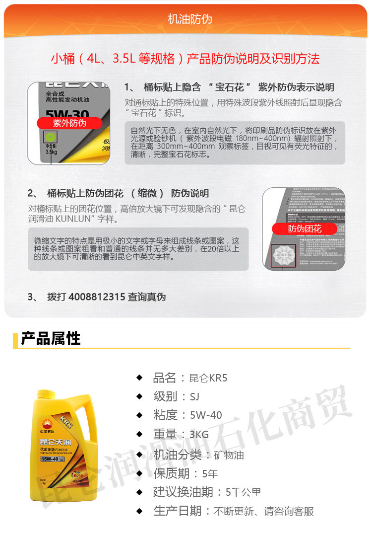 Kunlun Tianrun KR5 15W-40 SJ/SG/CF 3KG