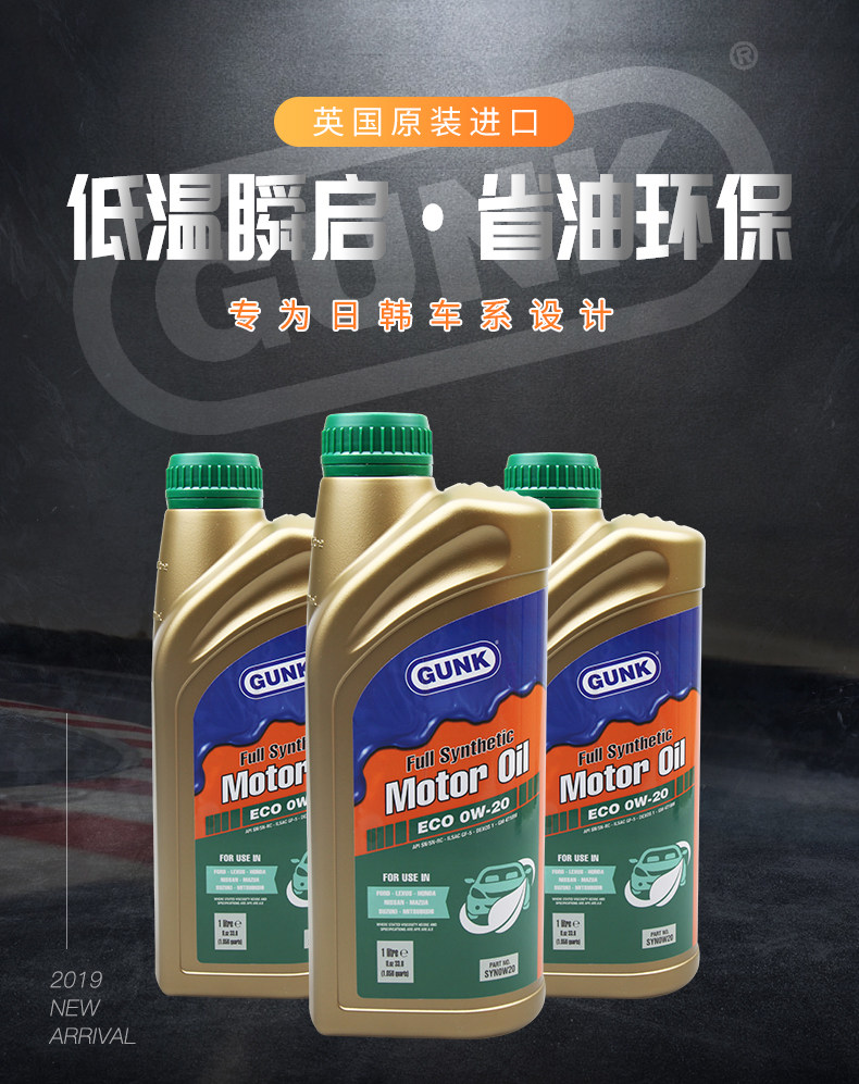 GUNK Toyota, импортное синтезированное моторное масло, смазочные материалы, натуральное масло, 0W, 0W
