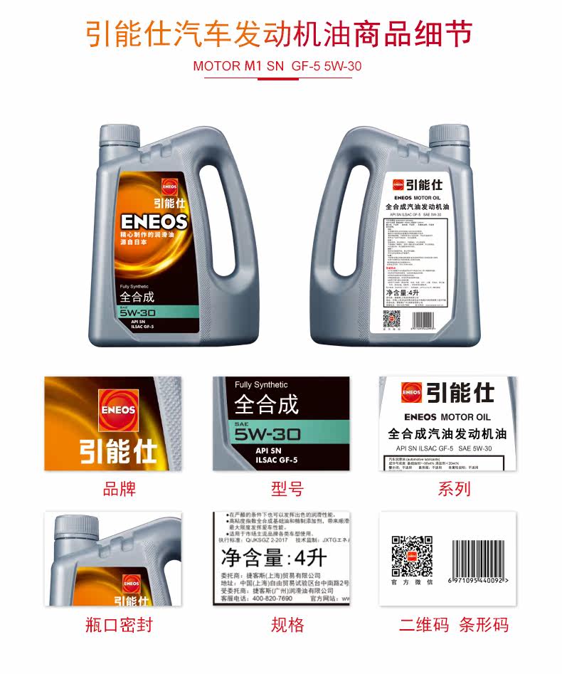 Eneos/Quality Motor M1 SN 5W-30 4L Оригинальный новый Ritzer Полный синтетический бензиновый моторный масло