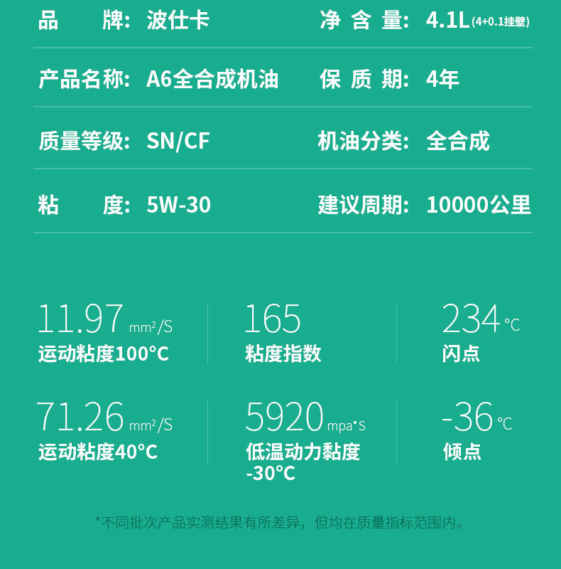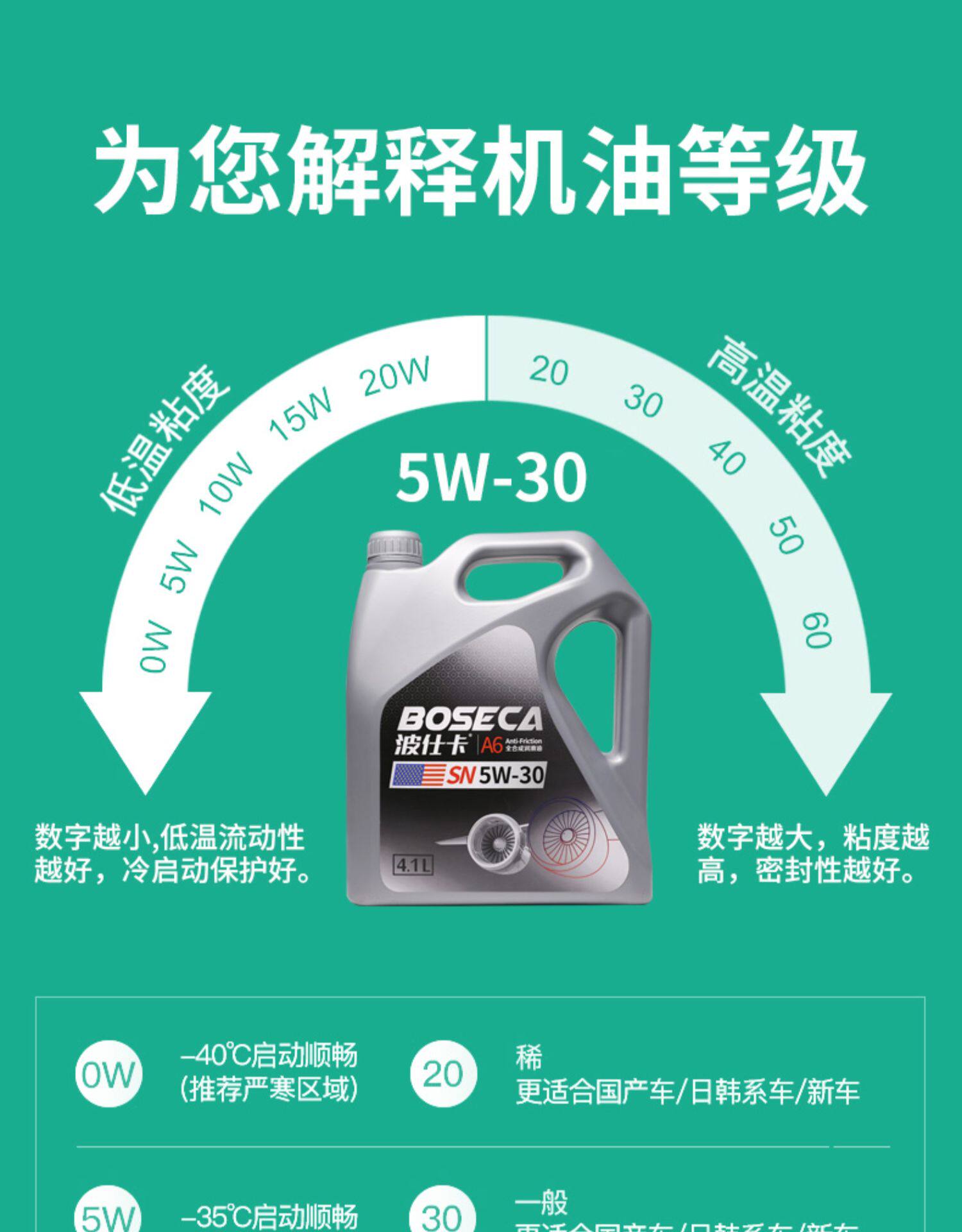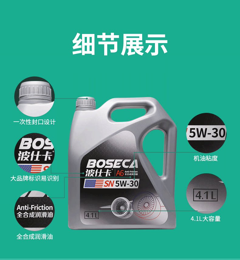 波仕卡 Моторное масло A6 Автомобильное смазочное масло подлинное SN/CF Grade 4.1L 5W-30 Полностью синтетическое моторное масло