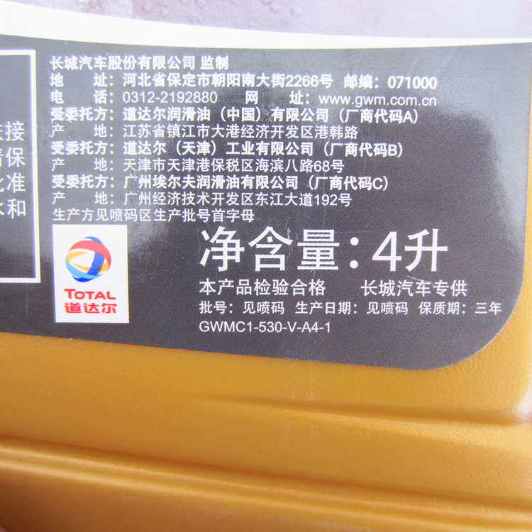 长城 Автомобиль Haval H1H2H6M4M6H7H8 Tengyi C30C50 Special SN5W30 Полное синтетическое масло масла масла